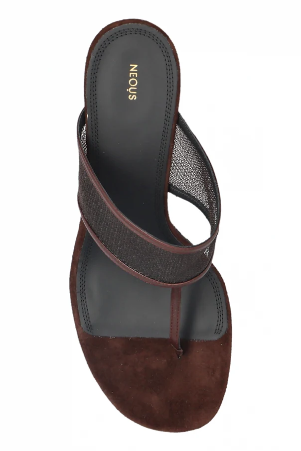 Stożkowy, stabilny obcas o harmonijnej wysokości unosi sylwetkę, oferując jednocześnie komfort użytkowania. Wnętrze oraz podeszwa zostały w całości wyściełane miękką skórą, gwarantującą poczucie luksusu przy każdym kroku. Unikatowego sznytu dodaje wyraźne, złote logo projektanta NEOUS, misternie umieszczone na tylnej części wkładki.