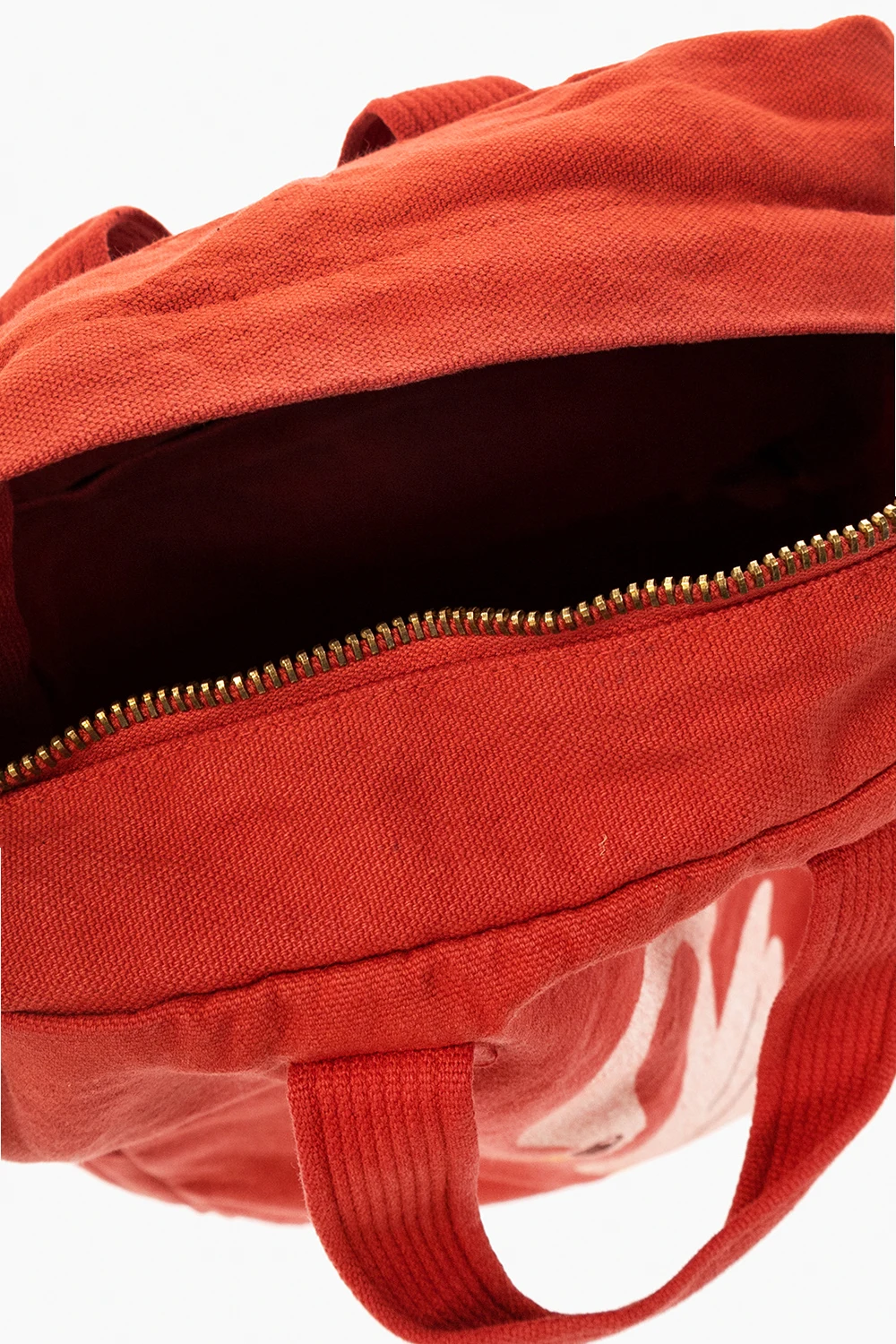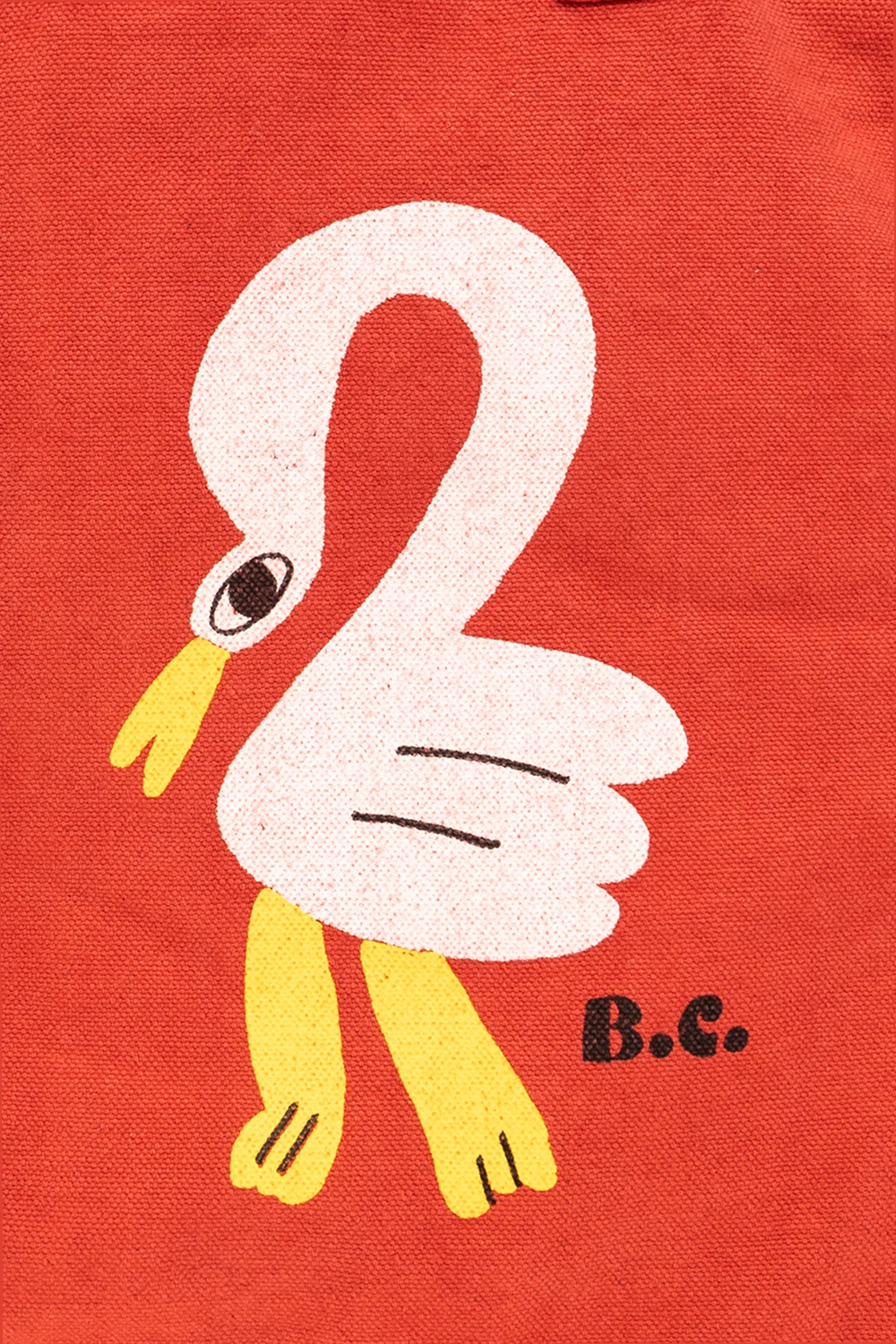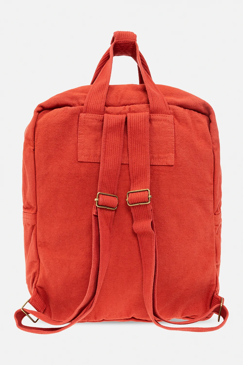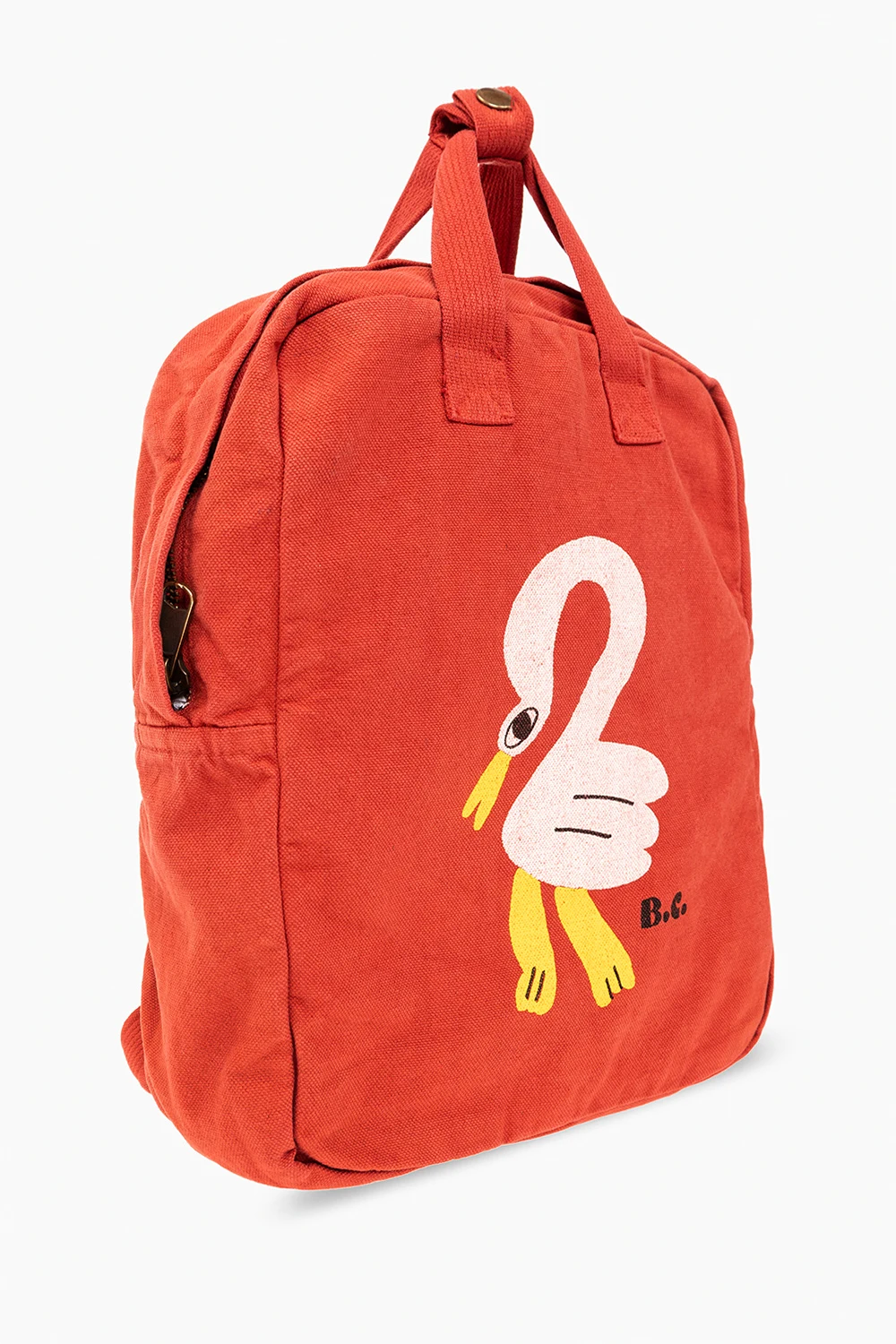 Czerwony plecak Bobo Choses. Wykonany z bawełny. Zamykany na zamek. Ozdobiony nadrukiem z motywem zwierzęcym. Dwie półokrągłe rączki. Szelki z możliwością regulacji długości. Wewnątrz komora oraz wsuwana kieszeń. Metalowe wykończenie w kolorze postarzanego złota.