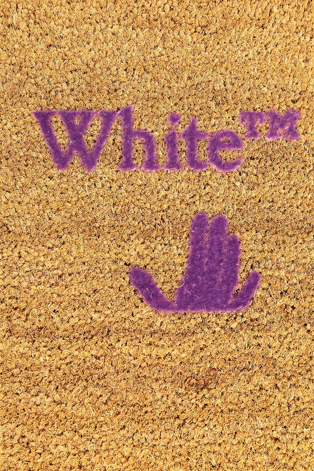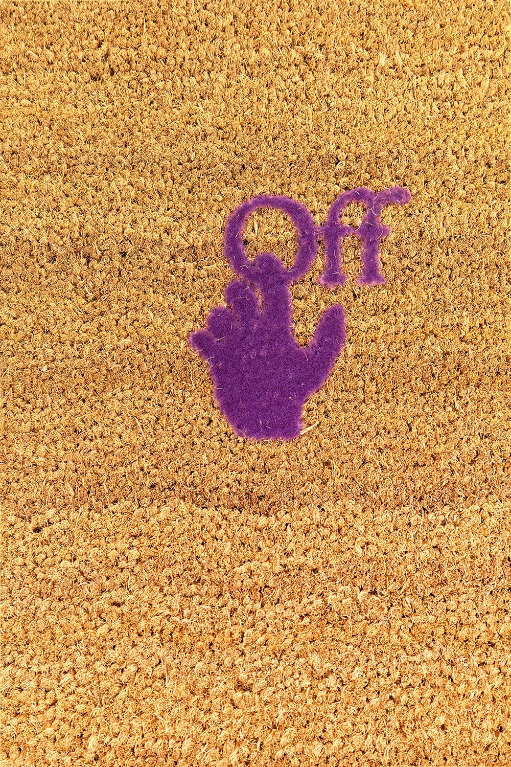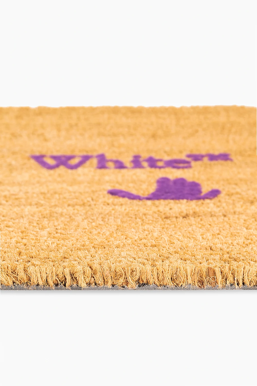 Brązowa wycieraczka Off-White, linia ‘Home’. Wykonana z włókien kokosowych. Ozdobiona fioletowym wzorem z logo.