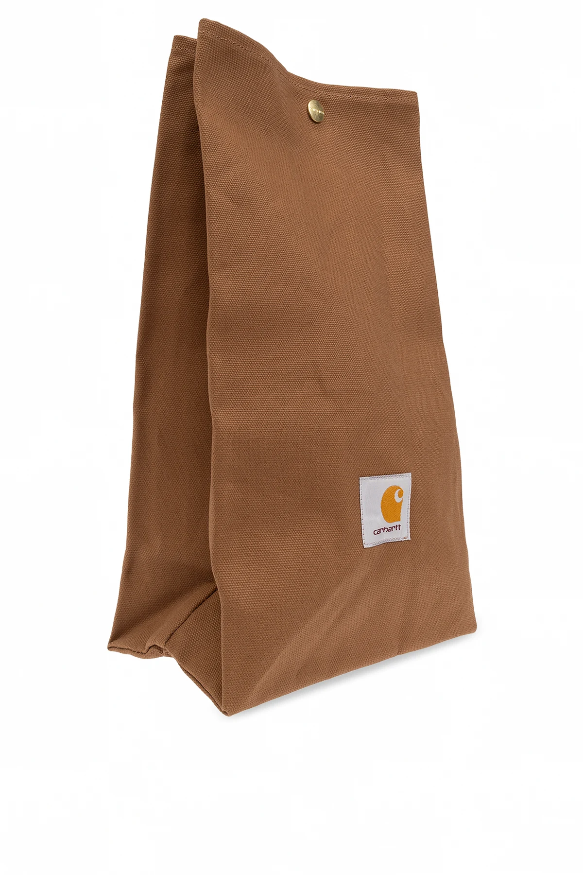 Detal, jakim jest naszywka z logo Carhartt WIP , umieszczona na przedniej stronie, stanowi o unikatowości tego projektu, łącząc w sobie białe tło z pomarańczowo-czarnym znakiem graficznym. Złoty zatrzask nie tylko zabezpiecza zawartość, ale również dodaje elegancji. Wnętrze torby, utrzymane w tym samym kolorze, co zewnętrzna część, zachwyca swoją obszernością, pozwalając na swobodne przechowywanie posiłków.
