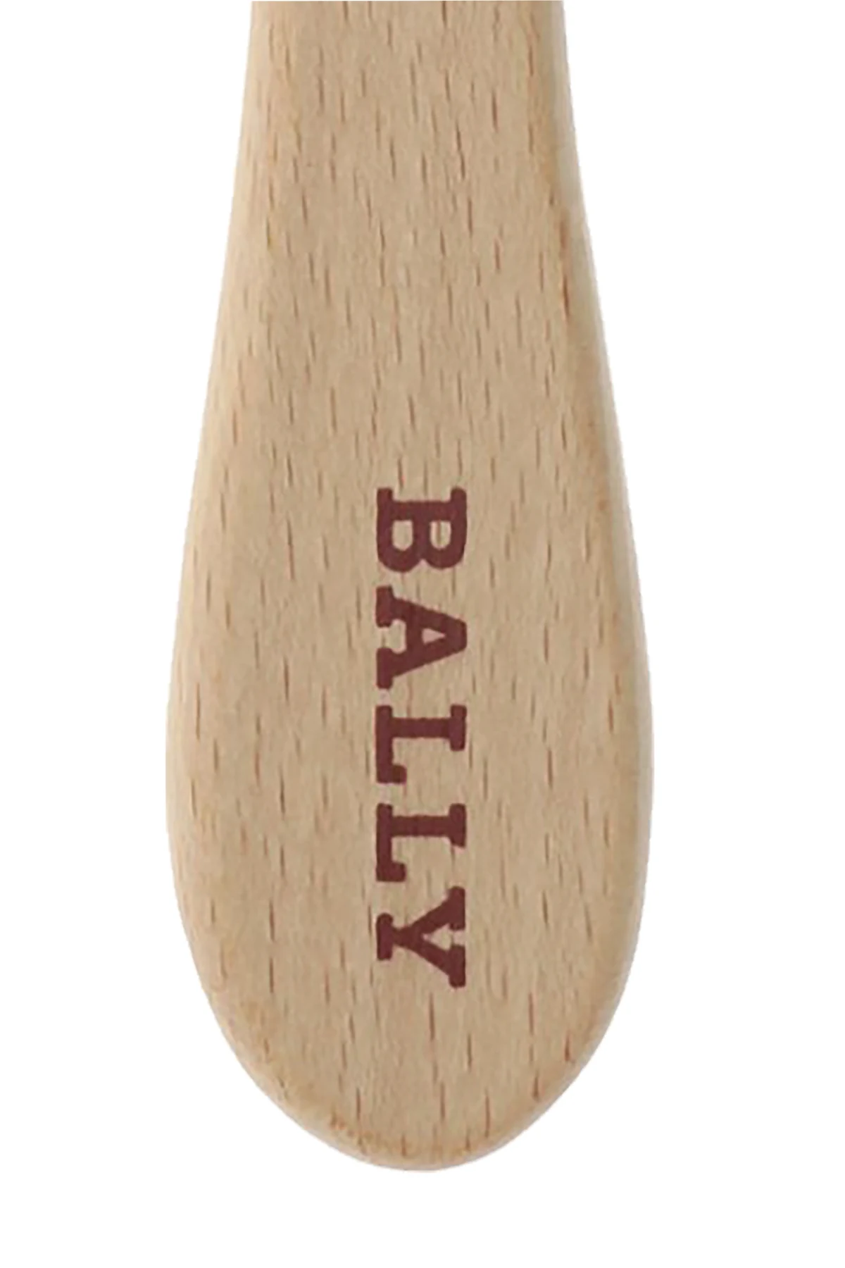 Drewniana szczotka do butów Bally. Wykończona syntetycznym włosiem. Ozdobiona nadrukowanym logo. Przeznaczona do pastowania butów wykonanych ze skóry.