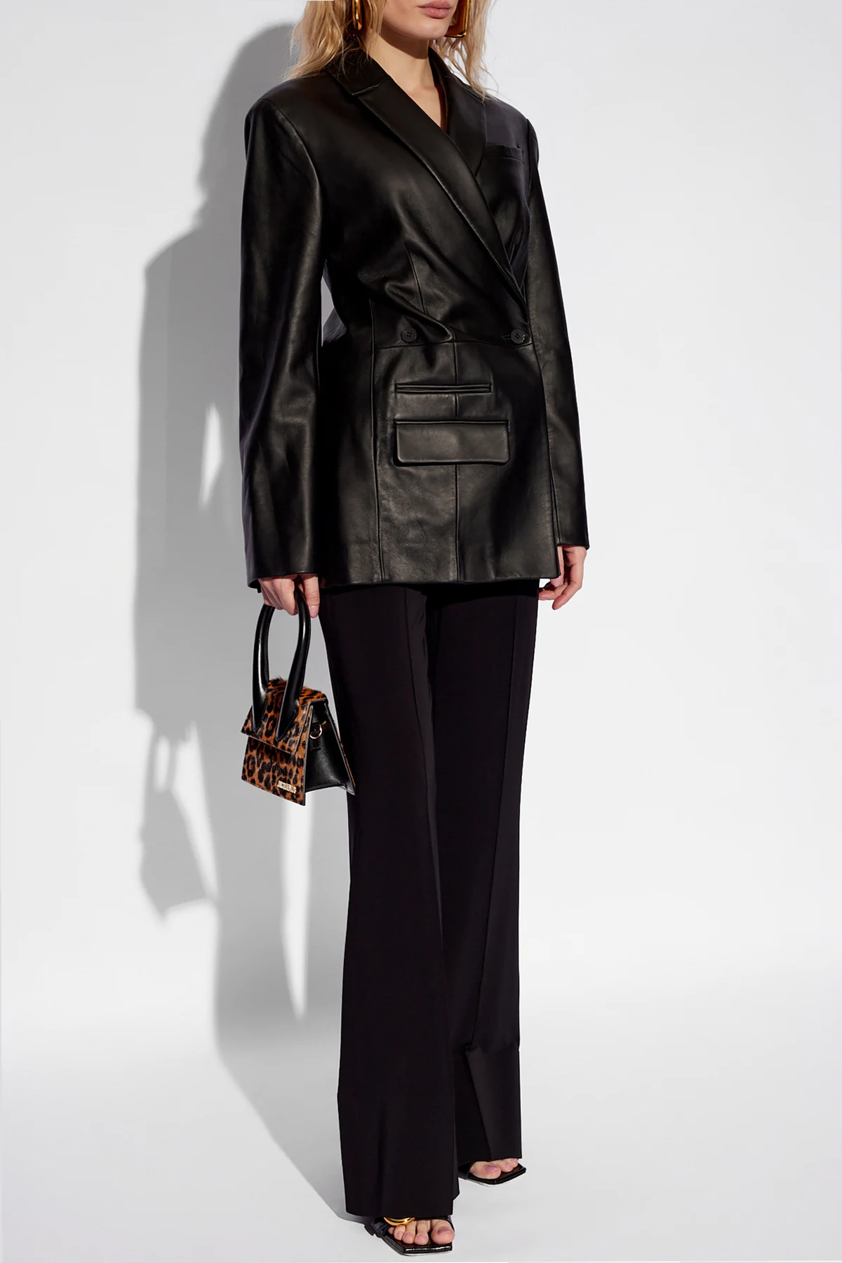 Prezentujemy Państwu wykwintną skórzaną marynarkę ‘Tibau’ od cenionego projektanta Jacquemus . Jest to kwintesencja elegancji i wysublimowanego gustu, utrzymana w ponadczasowej czerni. Zaprojektowana z myślą o kobietach ceniących sobie zarówno luksus, jak i wyrafinowanie w każdym detalu.
