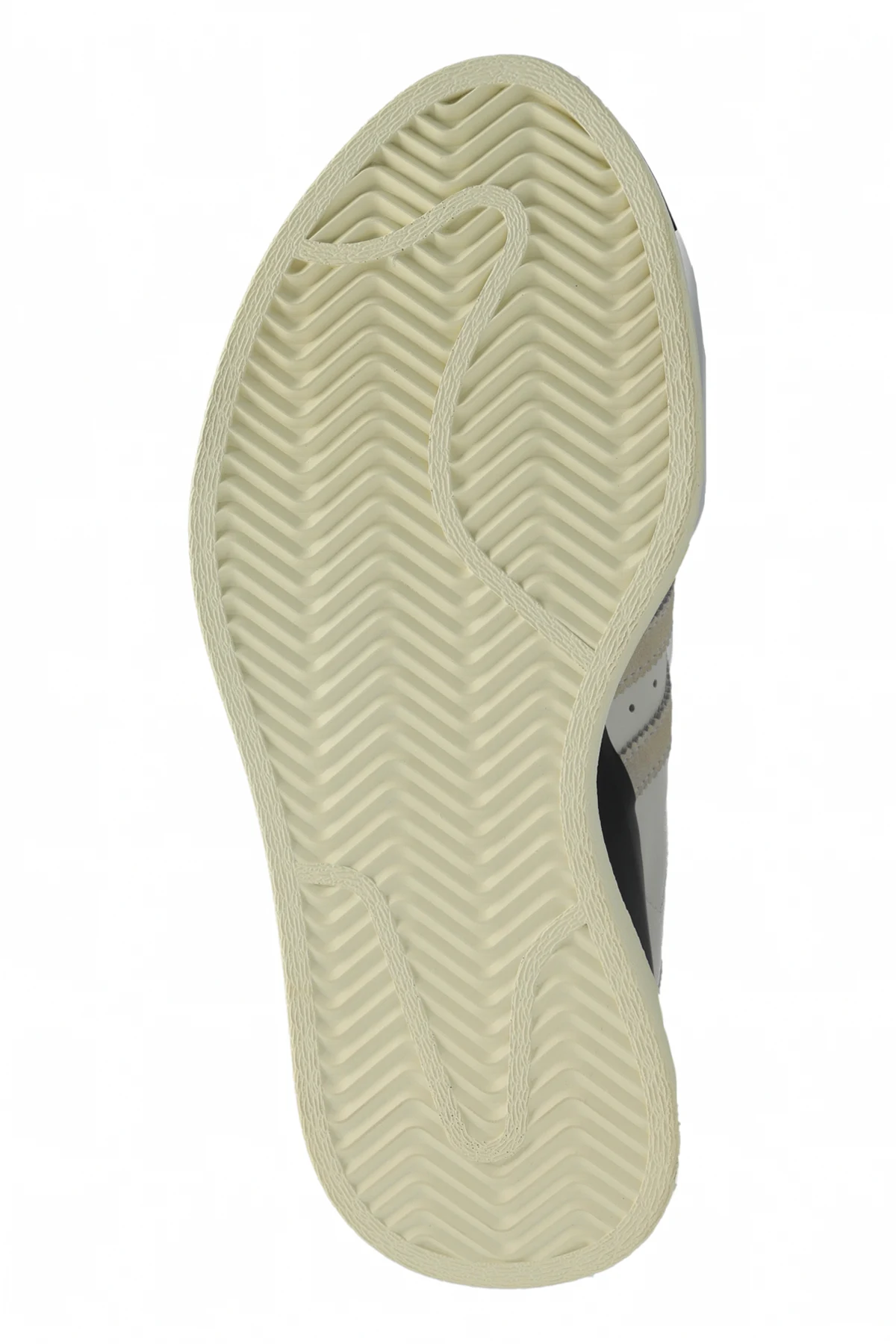 Czarny gumowy nosek oraz czarna wstawka w okolicach pięty i śródstopia dodają im wyrazistości. Nietypowa konstrukcja podeszwy z wycięciami w okolicach pięty nadaje butom futurystyczny wygląd, a kremowy kolor podeszwy z charakterystycznym wzorem bieżnika podkreśla ich unikatowość.
