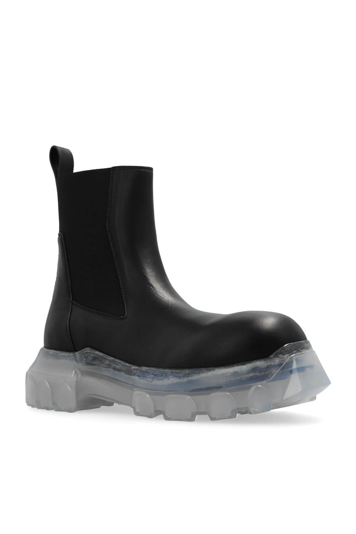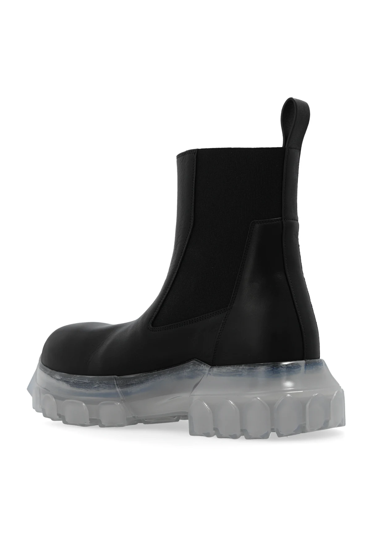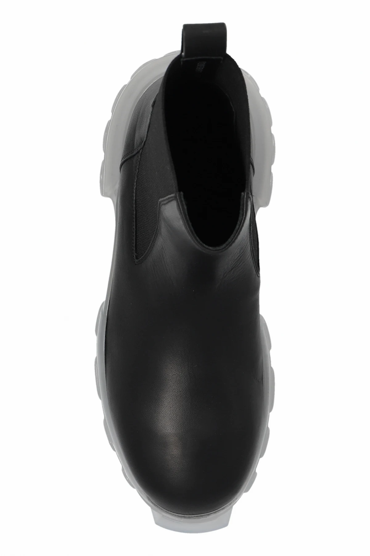 Te wyjątkowe buty wyróżniają się klasycznym fasonem za kostkę z masywnym wyglądem, podkreślonym przez grubą, wyrazistą podeszwę z przezroczystego gumowego materiału. Wstawki z elastycznego materiału po bokach ułatwiają zakładanie i zdejmowanie, a pętelka z tyłu dodaje praktyczności.