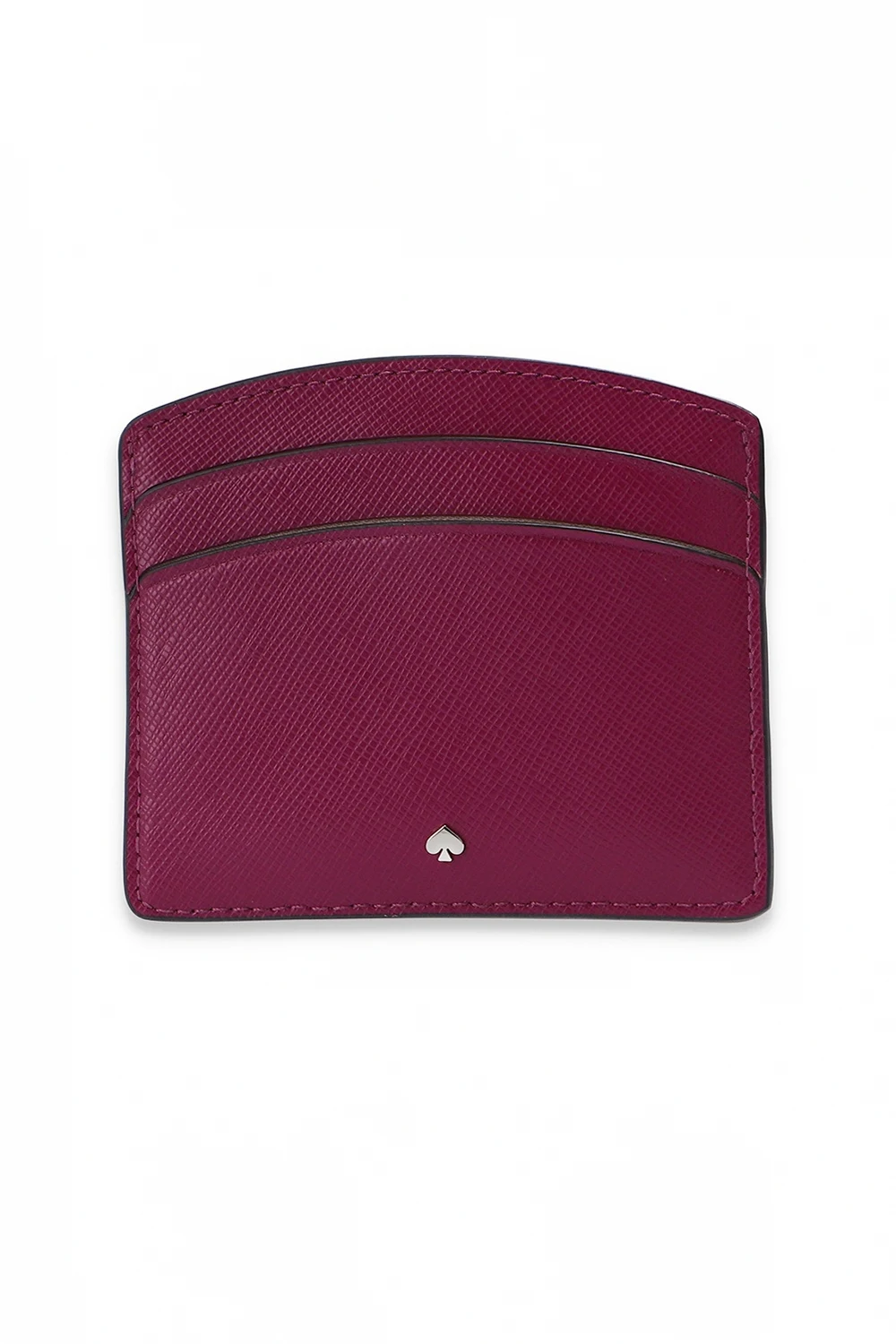 Fioletowe, skórzane etui, model 'Spencer' na karty Kate Spade. Ozdobiona metalowym logo w kolorze srebrnym. Pięć miejsc na kartę.