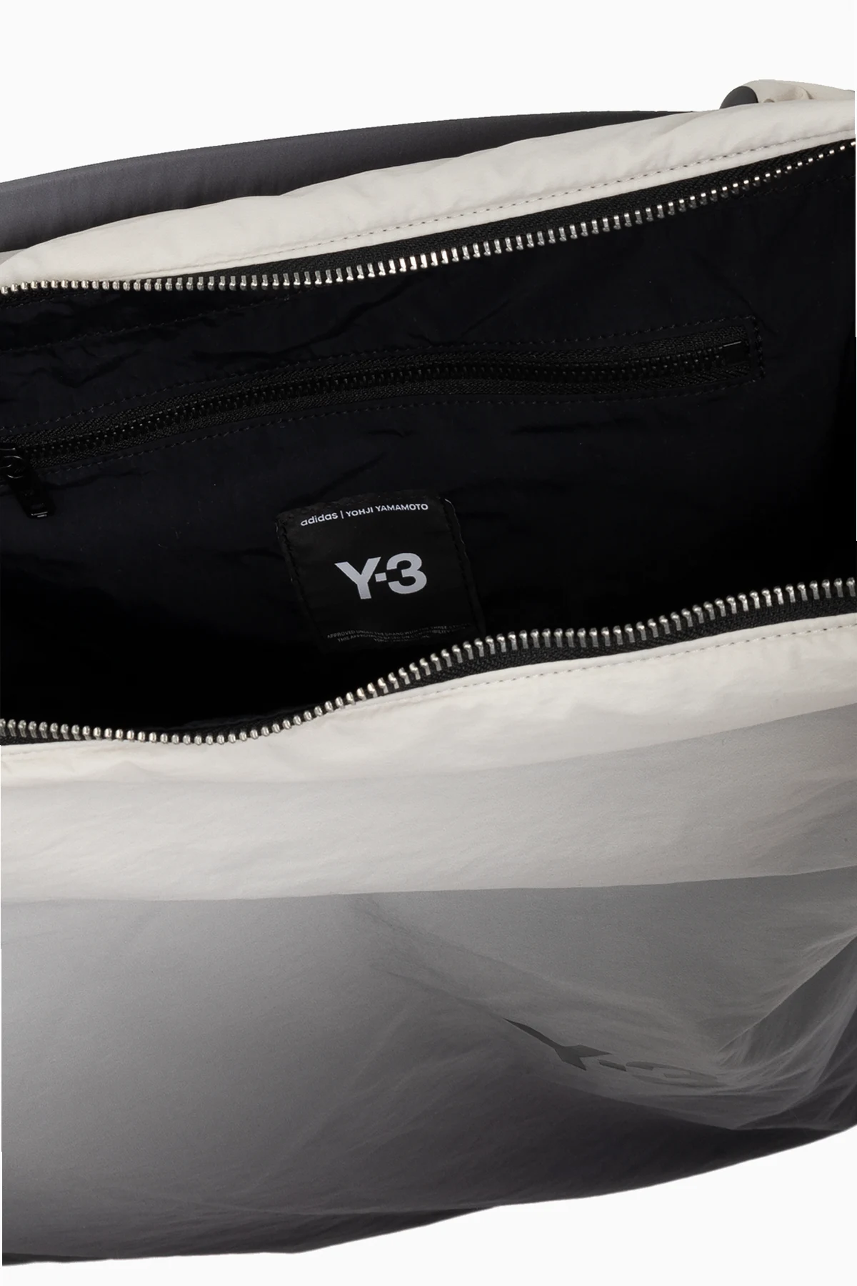 Gradientowy wzór, przechodzący od jasnoszarego u góry do ciemnoszarego, niemal czarnego koloru u dołu, nadaje torbie wyjątkowego charakteru. Duży, czarny napis "Y-3" na przedniej stronie stanowi charakterystyczne logo tej linii produktów.