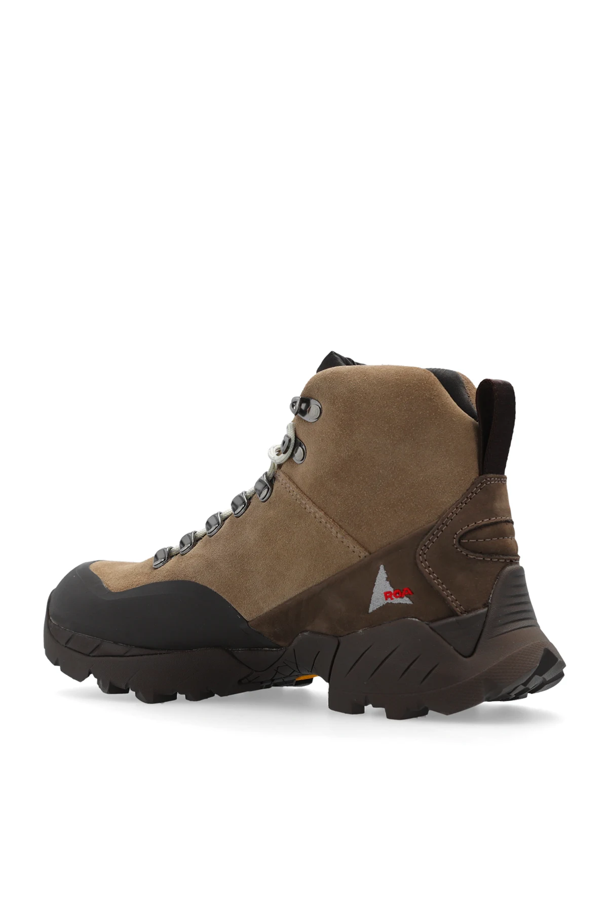 Brązowo-szare, sznurowane buty sportowe, model ‘Katharina’ ROA. Solidny techniczny materiał nylonowy zapewnia trwałość. Podeszwa Vibram z niestandardowym bieżnikiem zapewnia przyczepność i wsparcie na najtrudniejszych powierzchniach.