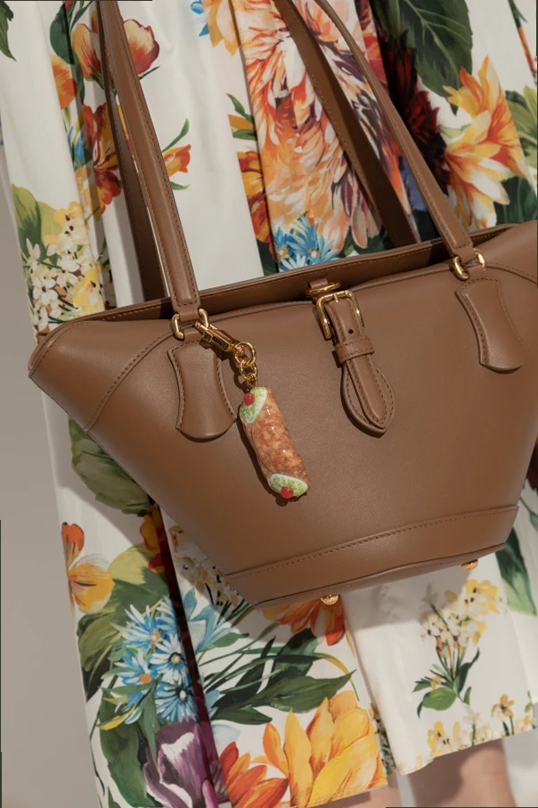 Zawieszka do torby z ekskluzywnej kolekcji Dolce & Gabbana to kwintesencja włoskiego kunsztu i elegancji. Inspiracją dla projektu stał się słynny deser – cannoli. Owalny kształt zawieszki oraz niezwykła dbałość o detale zachwycają odwzorowaniem słodyczy: białe polewy, subtelne akcenty zieleni i czerwieni przywodzą na myśl pistacje oraz owoce kandyzowane.