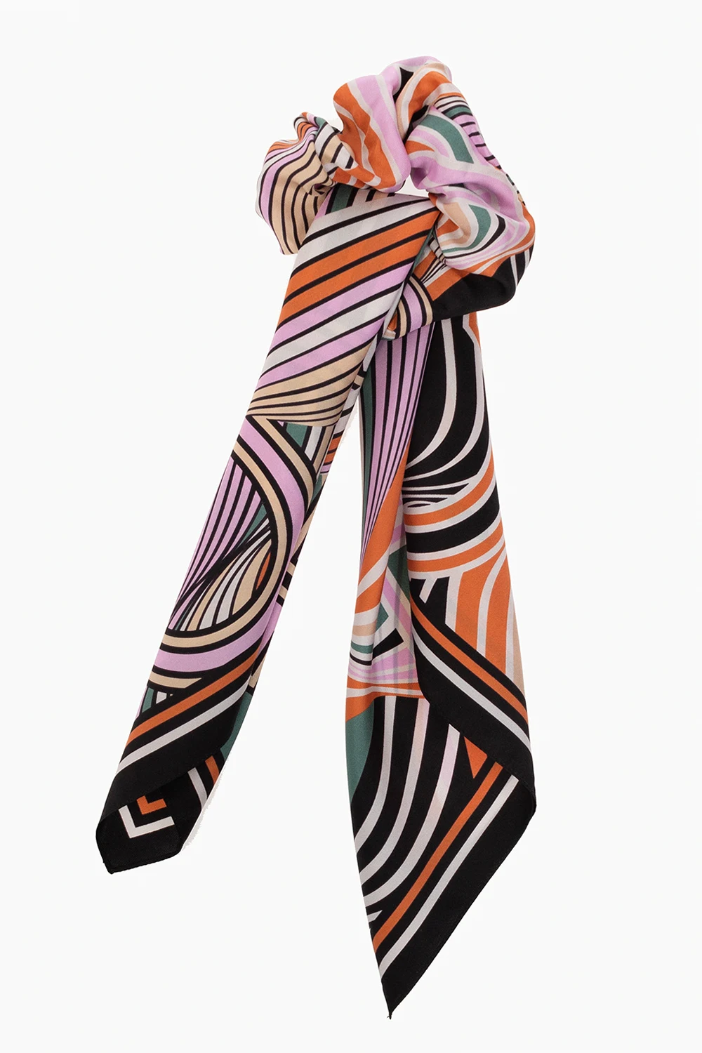 Kolorowy komplet chusta i gumka do włosów FERRAGAMO. Wykonany z jedwabiu. Ozdobiony wzorem.