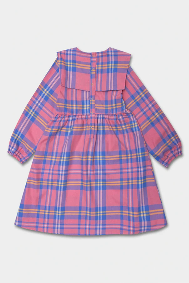 Kolorowa sukienka Mini Rodini. Wykonana w 100% z bawełny organicznej z certyfikatem GOTS. Zapinana z tyłu na zatrzaski. Ozdobiona wzorem w kratę. Okrągły dekolt z kołnierzem. Długie rękawy.