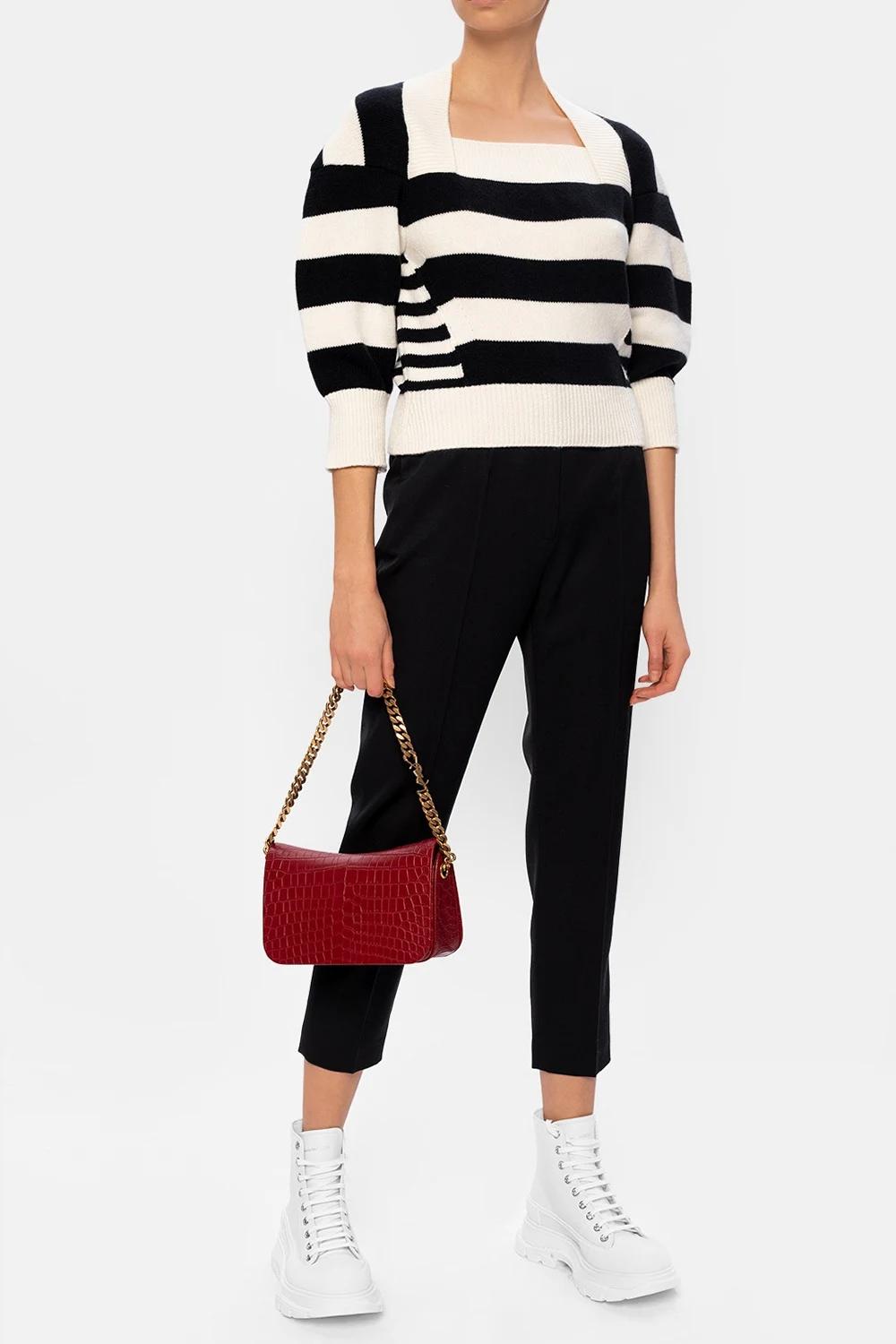 Białe, sznurowane botki na platformie Alexander McQueen. Wykończone skórą. Ozdobione wypukłym logo. Biała, gumowa podeszwa.