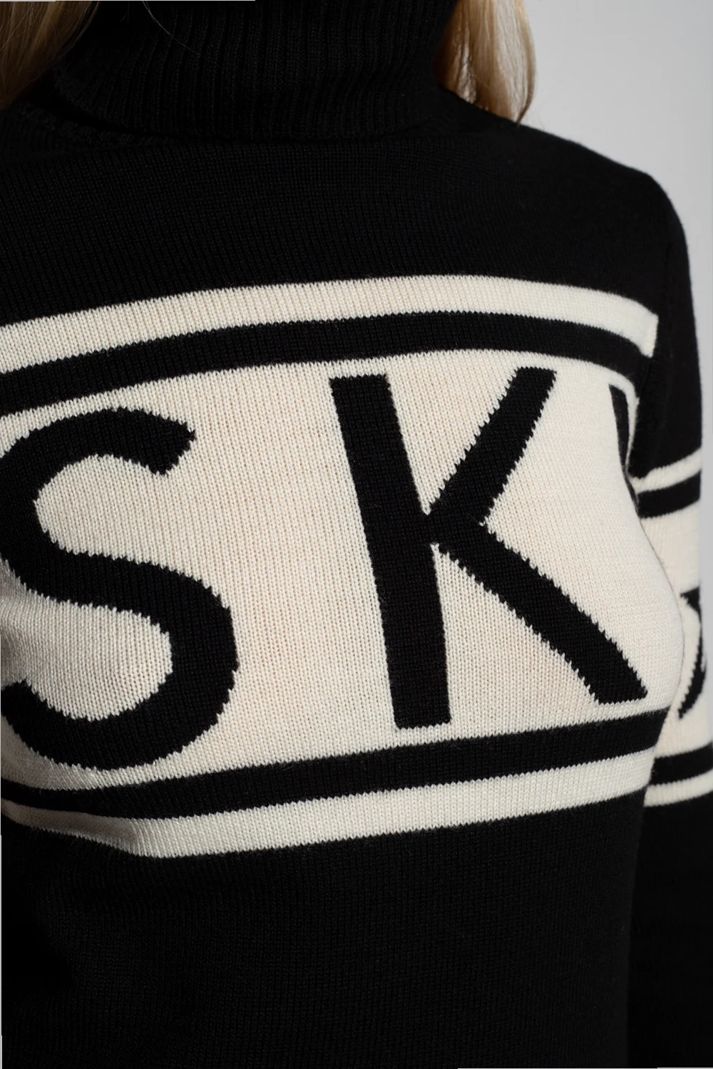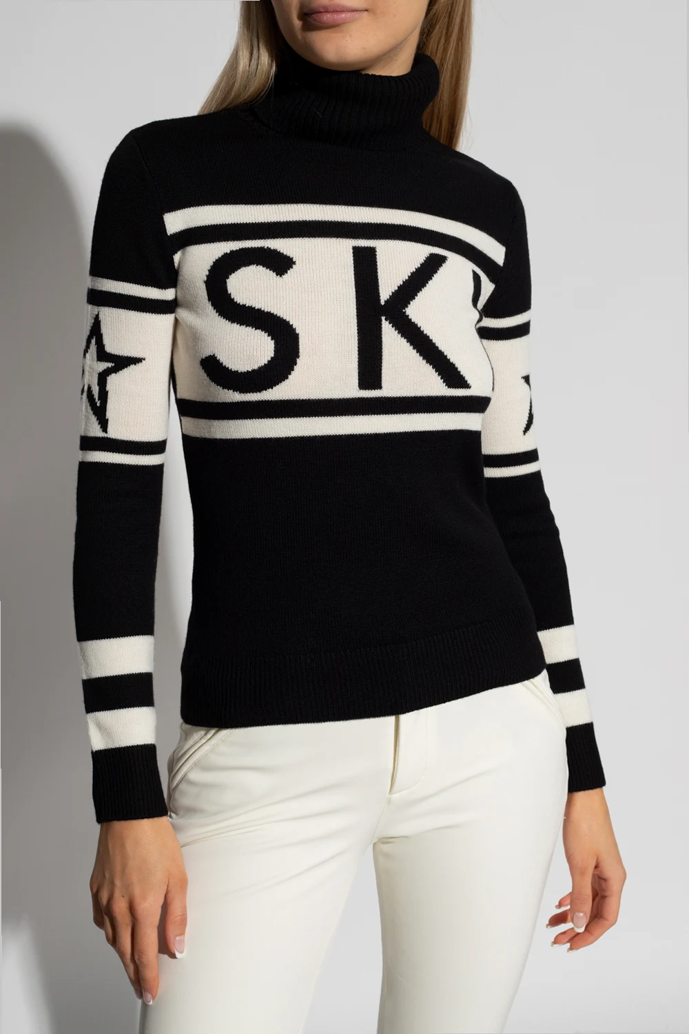 Kremowo-czarny golf Perfect Moment. Wykonany z wełny. Ozdobiony wzorem z logo. Stójka, dół i długie rękawy wykończone ściągaczem.