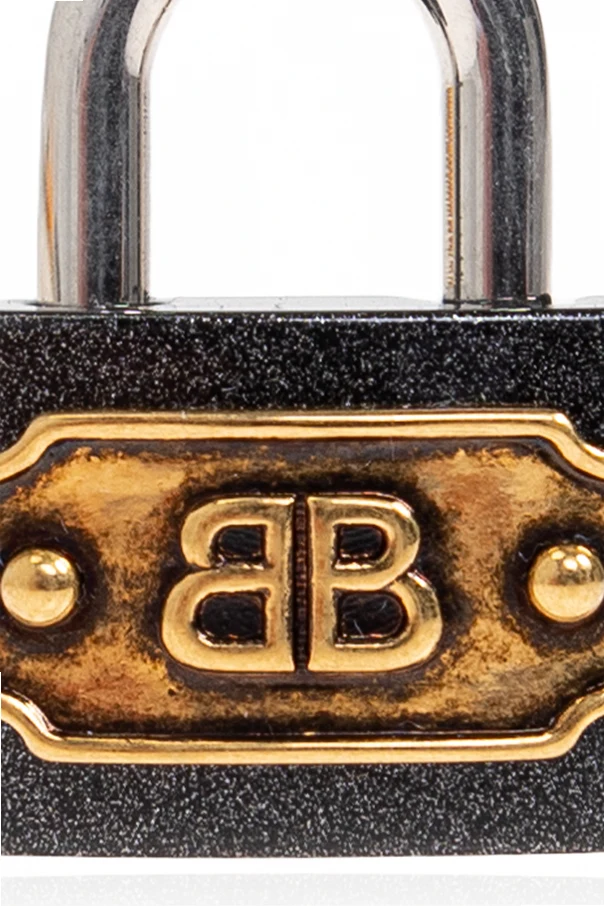 Efektowna, emblematyczna blaszka w odcieniu postarzanego złota, ozdobiona wypukłym logotypem BB — inicjałami projektanta marki Balenciaga — wysuwa się na pierwszy plan i eksponuje unikatowość zawieszki. Harmonijne połączenie polerowanego metalu oraz dekoracyjnych detali czyni ten produkt prawdziwie ekskluzywnym akcentem dla miłośników ponadczasowych dodatków.