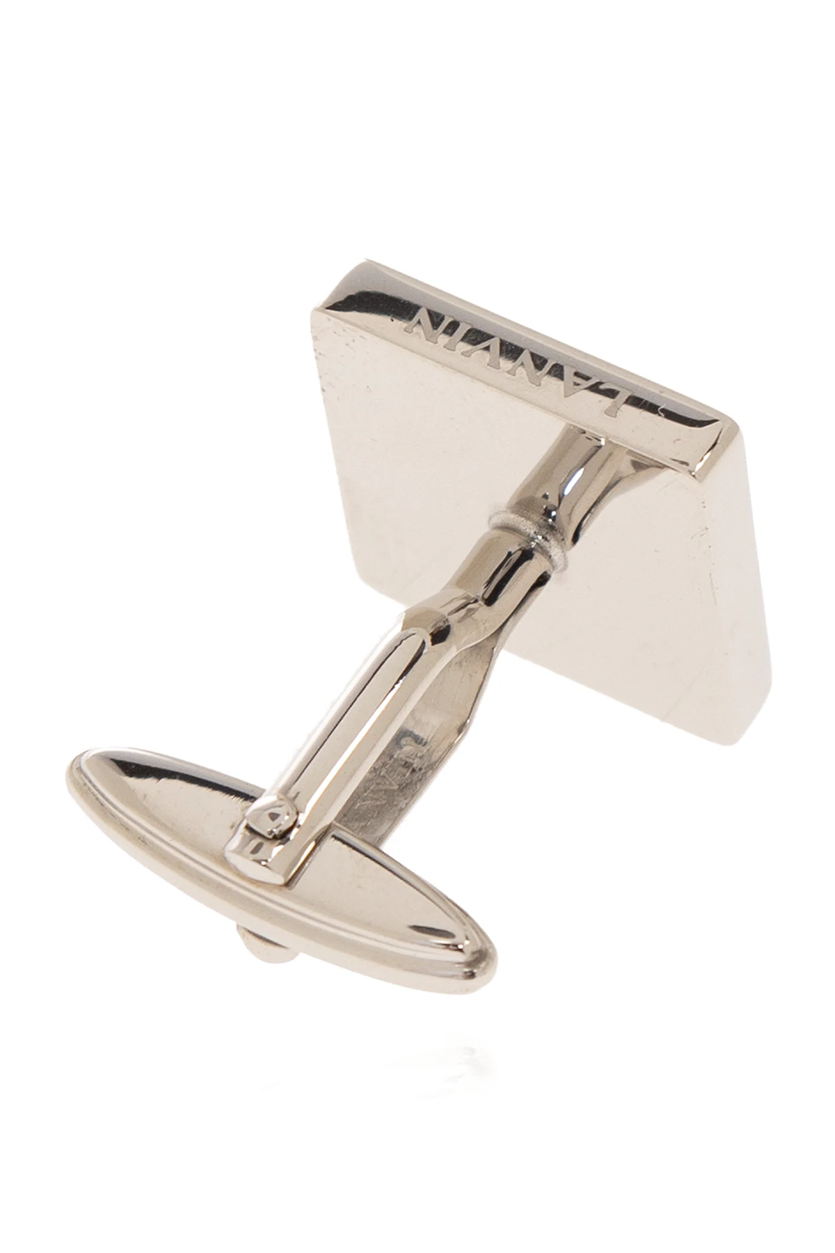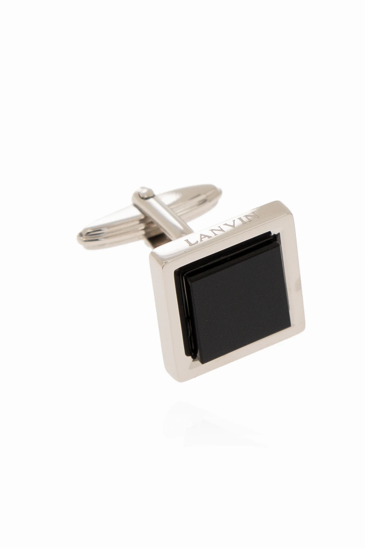 Spinki do mankietów w kolorze srebrnym Lanvin. Ozdobione wstawką w kolorze czarnym.