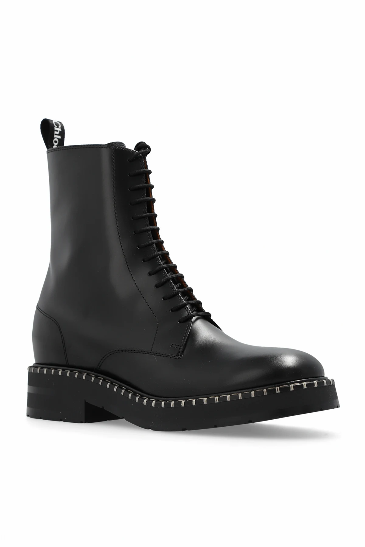 Czarne, sznurowane buty za kostkę, model ‘Noua’ Chloe. Wykonane ze skóry. Zapinane z boku na zamek. Z tyłu krótki uchwyt z logo. Czarna, gumowa podeszwa.