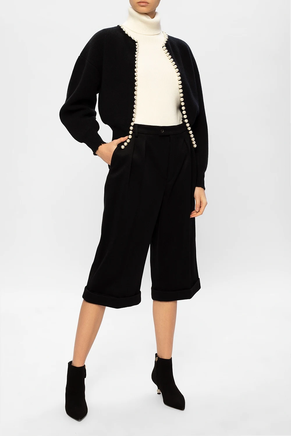 Czarne, zamszowe botki na obcasie, model ‘Chaillot’ Kate Spade. Zapinane z boku na zamek. Nosek w szpic. Obcas ozdobiony aplikacją wykończoną szklanymi kamieniami. Beżowa, skórzana podeszwa.
