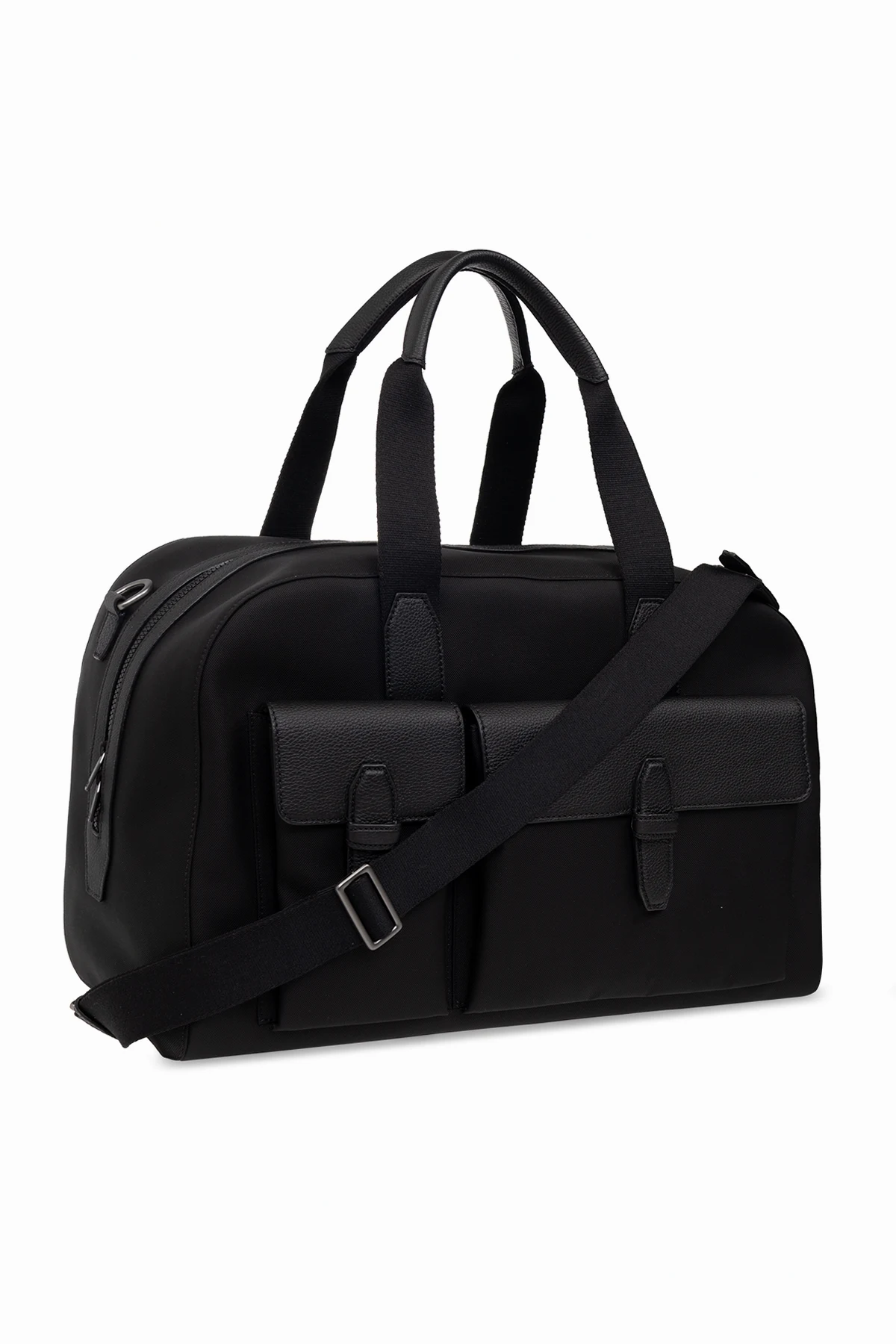 Wykonana z poliamidu o podwyższonej odporności, torba zachwyca trwałością i lekkością. Dwie praktyczne kieszenie z klapkami, zamykane na paski z ozdobnymi przeszyciami, umożliwiają łatwy dostęp do podręcznych drobiazgów. Subtelne detale wykończenia podkreślają unikatowy charakter produktu sygnowanego przez dom mody Brioni.