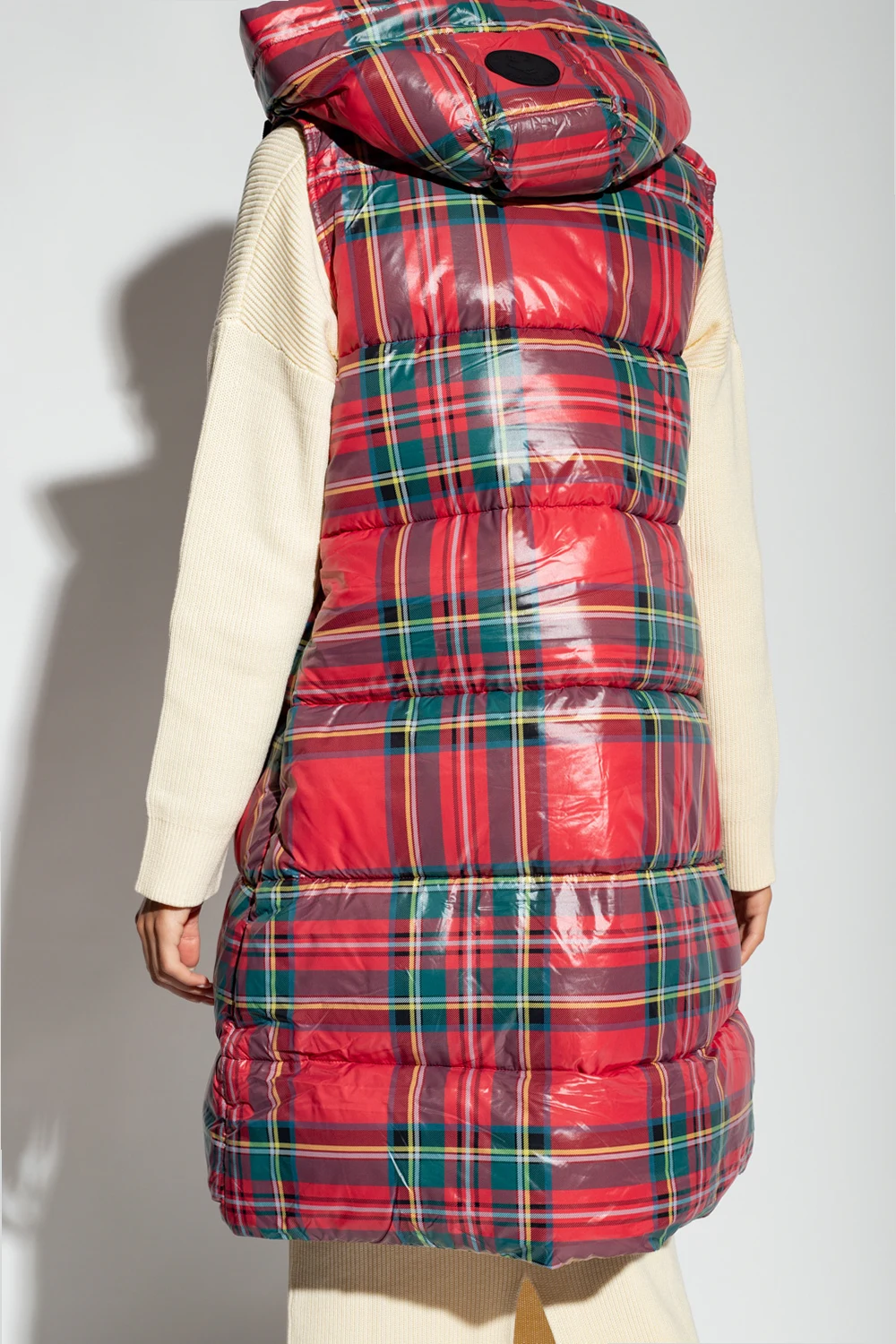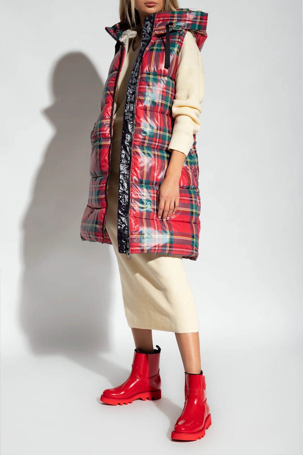 Czerwona, pikowana kamizelka, model ‘Ambra’ Save The Duck. Ocieplana syntetycznym puchem Plumtech®. Zapinana na dwubiegunowy zamek. Kaptur ściągany trokami. Ozdobiona kolorowym wzorem w kratę i czarną, gumową naszywką z logo. Z przodu dwie kieszenie zapinane na zamek. Kurtka ma właściwości wodoodporne, oddychające i chroniące przed wiatrem. Zakres temperatur od -10°C do 14°C.