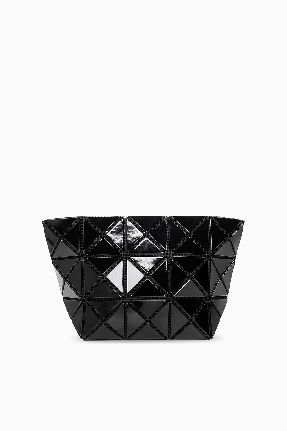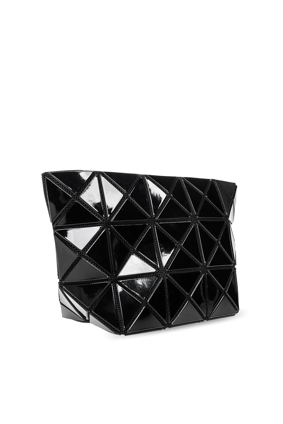 Czarna kosmetyczka Bao Bao Issey Miyake. Wykonana z siatki pokrytej aplikacjami tworzącymi geometryczny wzór. Zamykana na zamek. Wewnątrz komora. Metalowe elementy w kolorze ciemnego srebra.