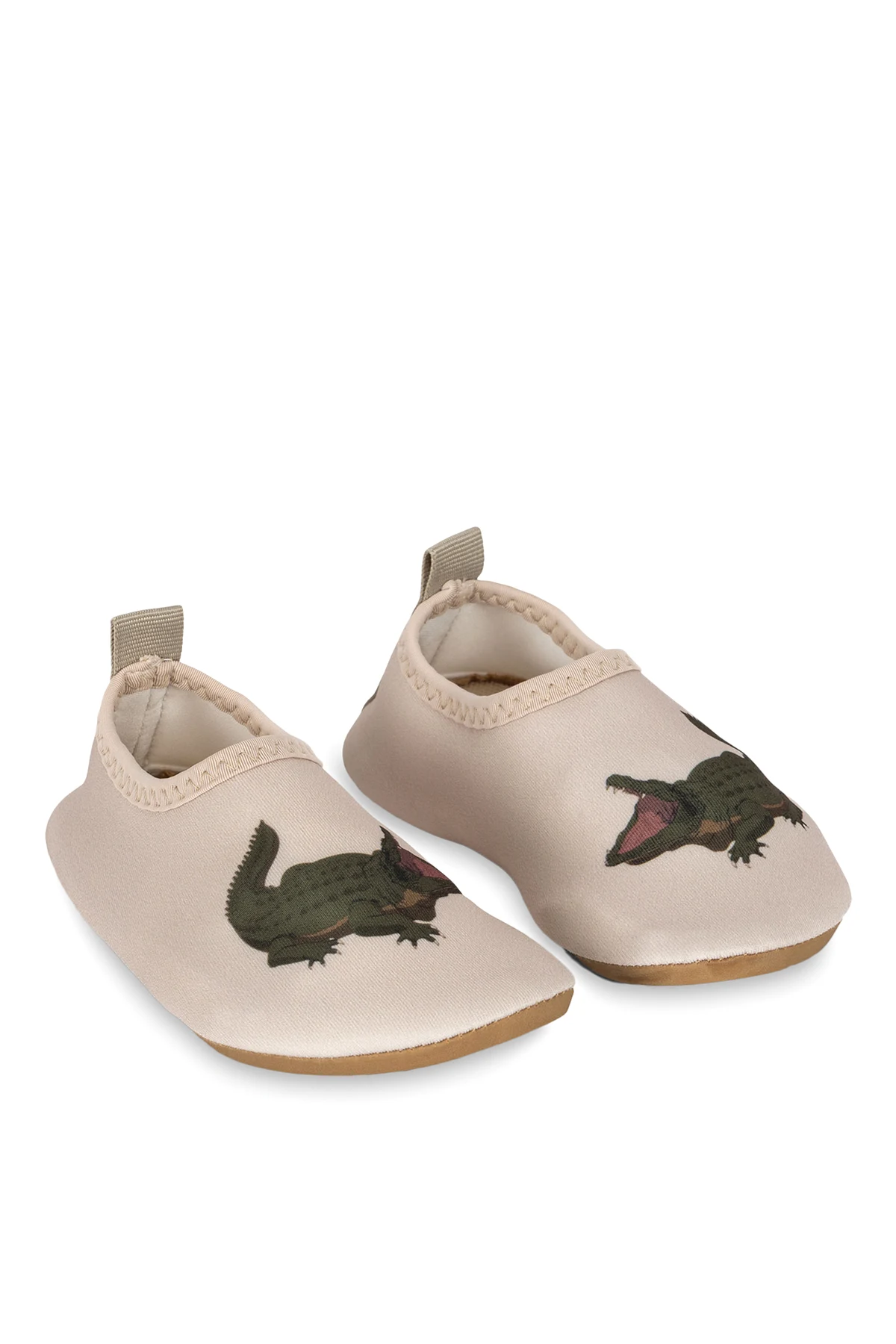 Zaprezentujemy Państwu wykwintne Buty do pływania ‘Aster’ z kolekcji projektanta Konges Sløjd , które są kwintesencją elegancji i funkcjonalności dla najmłodszych. Subtelny kolor ecru, przełamany jest urokliwym wzorem krokodyla w zielono-brązowej kolorystyce, dodającym dziecięcej zabawie w wodzie nuty wyrafinowanego stylu.