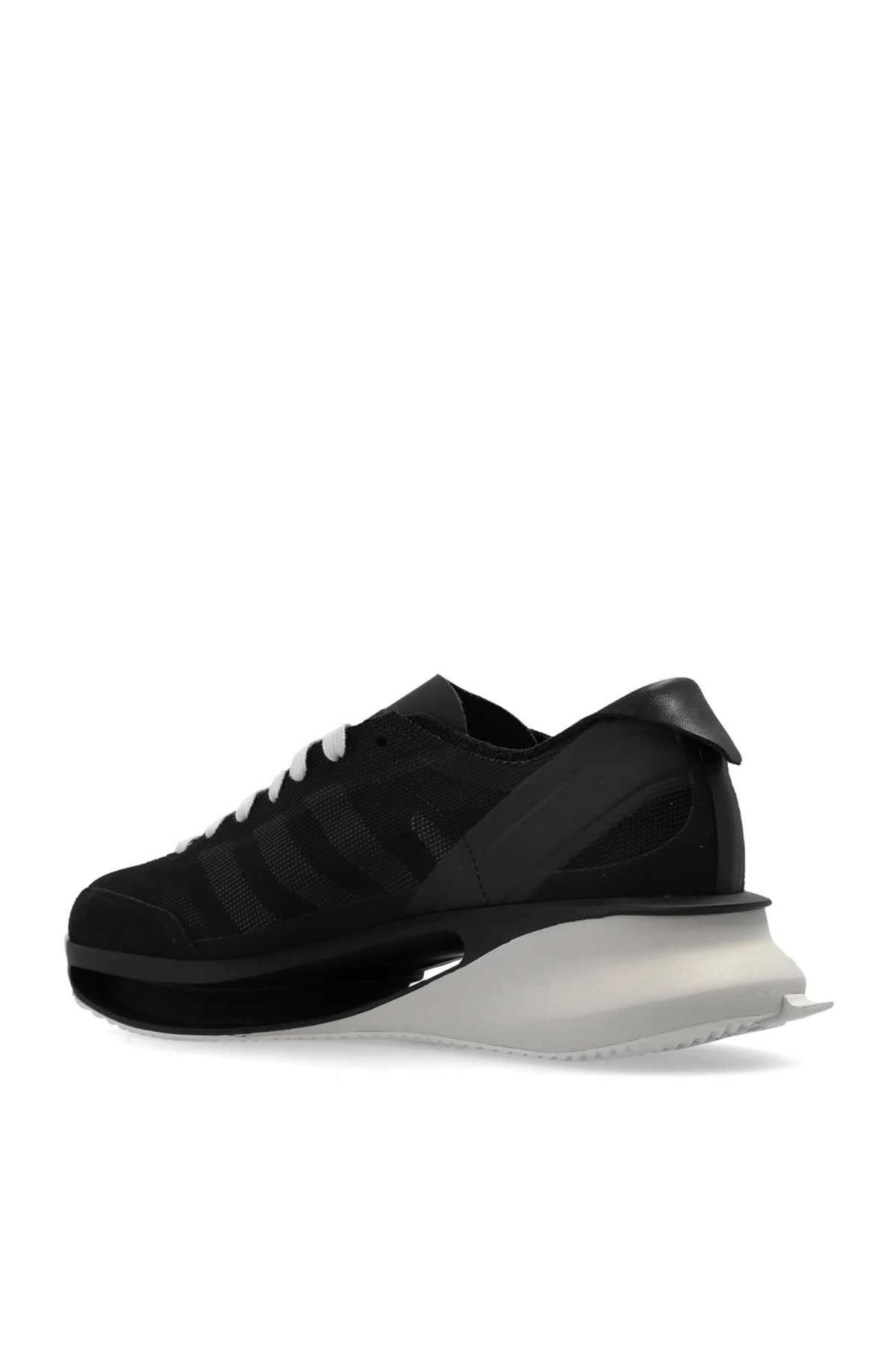 Cholewka buta wykonana jest z połączenia materiałów syntetycznych i tekstylnych, co zapewnia trwałość i przewiewność. Główna część buta ozdobiona jest półprzezroczystymi panelami, nadającymi nowoczesny i stylowy wygląd. Na bocznej części buta znajduje się podpis projektanta w białym kolorze, co dodaje ekskluzywności i rozpoznawalności.