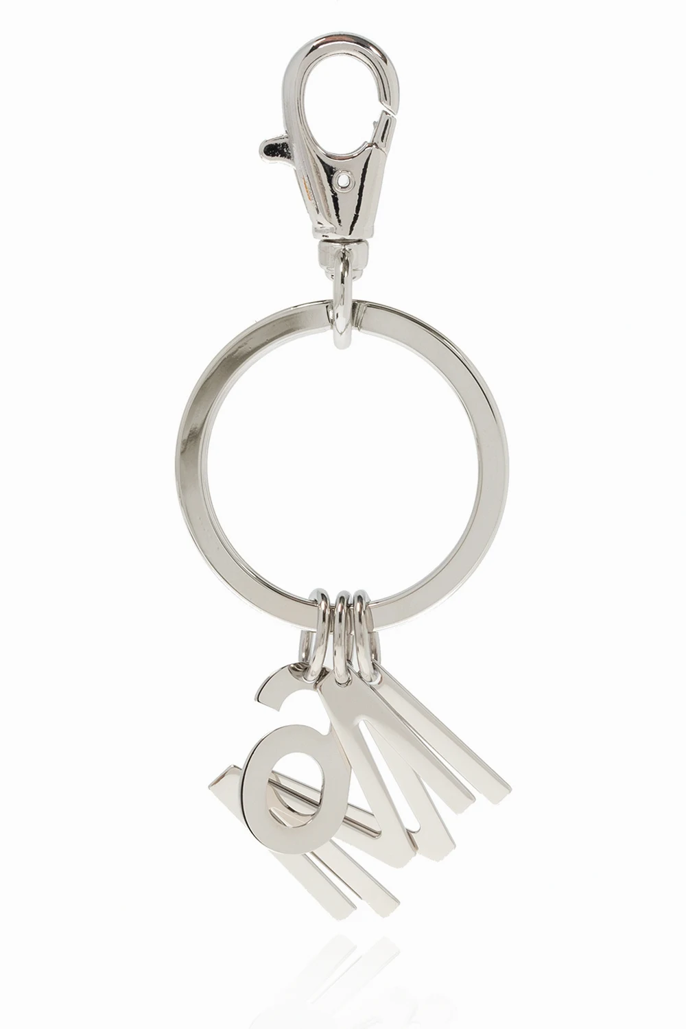 Mosiężny brelok w kolorze srebrnym MM6 Maison Margiela. Ozdobiony aplikacją z logo. Zapięcie na karabińczyk.