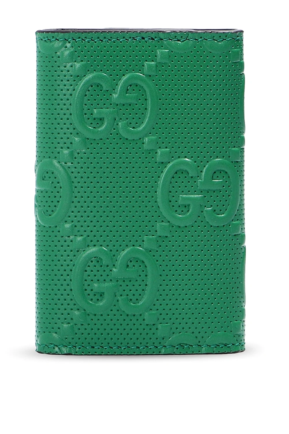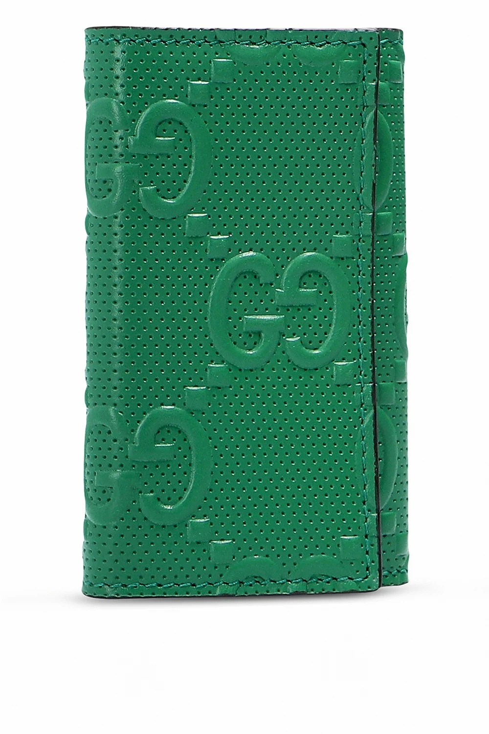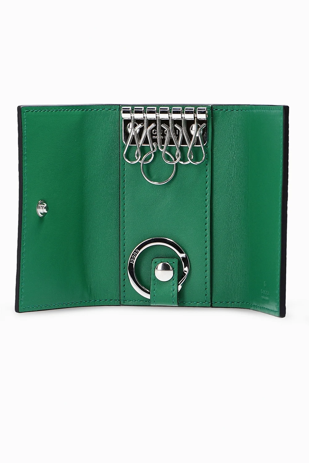 Zielone etui na klucze Gucci. Wykonane ze skóry z wytłoczonym logo. Zamykane na zatrzask.