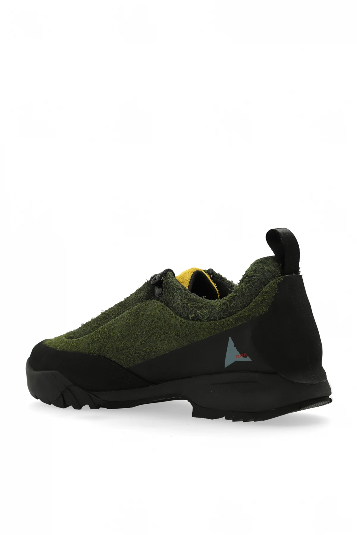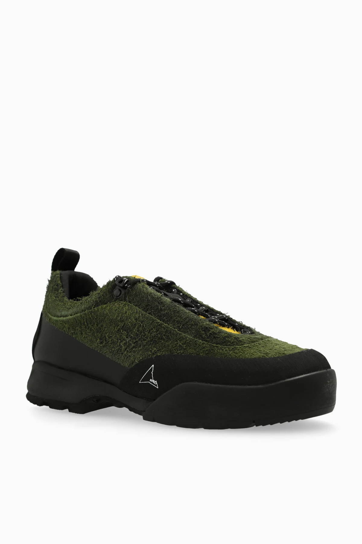 Szczegóły i Logo: Czarne sznurowadła z żółtymi wstawkami podkreślają dynamiczny wygląd butów. Małe, trójkątne logo umieszczone z boku to charakterystyczny detal marki. Żółta wyściółka wewnętrzna, widoczna przez otwór cholewki, nadaje dodatkowego stylowego akcentu. Mała pętla na pięcie ułatwia zakładanie.