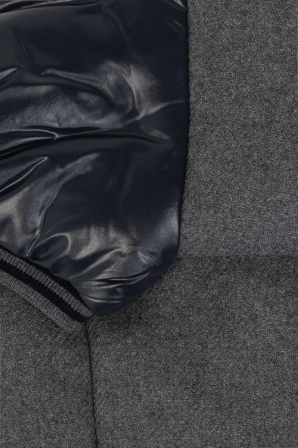 Dominującym kolorem kamizelki jest szary, z akcentami z ciemnego, połyskującego materiału, który zapewnia wodoodporność. Na przedniej części kamizelki znajduje się duże, haftowane logo z literą "M" oraz emblematem marki. Zapinana na guziki, posiada dwie kieszenie z obszyciami z ciemnego materiału. Dodatkowe wstawki na tylnej części kamizelki chronią przed wiatrem i deszczem.