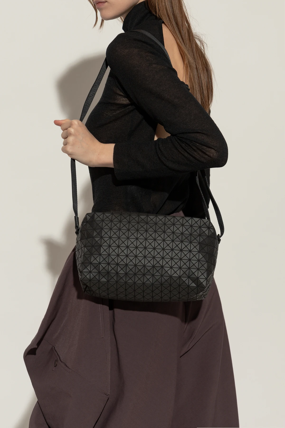 Oto czarna torba na ramię z ekskluzywnej kolekcji Bao Bao Issey Miyake, która łączy w sobie nowoczesny design z niezwykłą funkcjonalnością. Prostokątny kształt torby zdobi geometryczny wzór, złożony z trójkątów tworzących siatkę, co podkreśla jej futurystyczny charakter. Wykonana z innowacyjnych materiałów, takich jak bawełna i poliuretan, torba jest zarówno elegancka, jak i trwała.