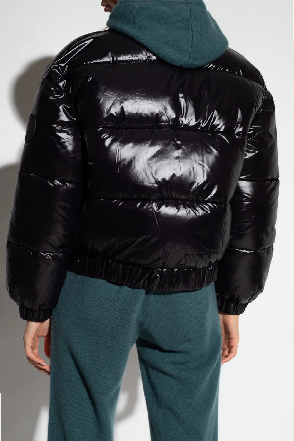 Czarna, pikowana kurtka o krótkim kroju, model ‘Shira’ Save The Duck. Ocieplana syntetycznym puchem Plumtech®. Zapinana na dwubiegunowy zamek. Na ramieniu ozdobiona naszywką z logo. Dekolt wykończony krótką stójką. Dwie kieszenie zapinane na zamek. Długie rękawy oraz dół wykończone ściągaczem. Kurtka ma właściwości wodoodporne i chroniące przed wiatrem. Zakres temperatur od -10°C do +5°C.