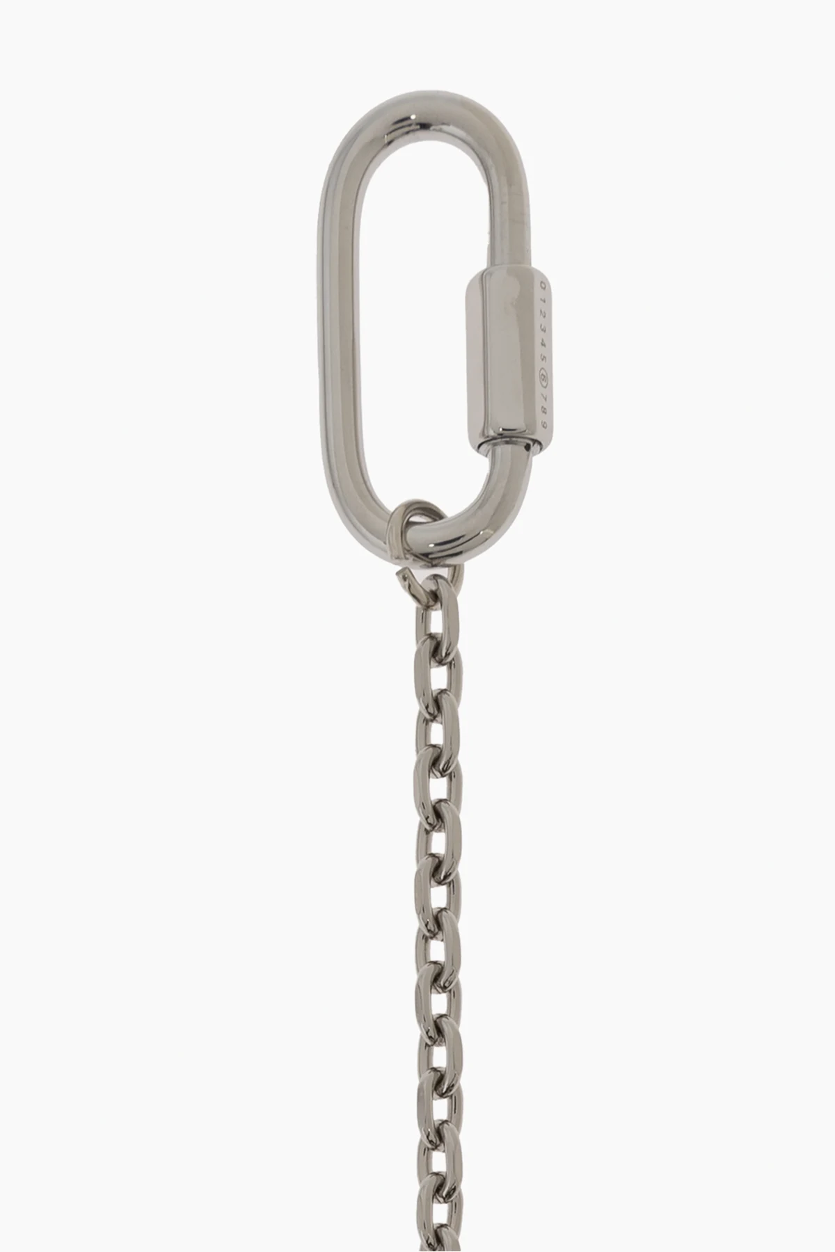 Praktyczny srebrny łańcuszek z karabińczykiem.