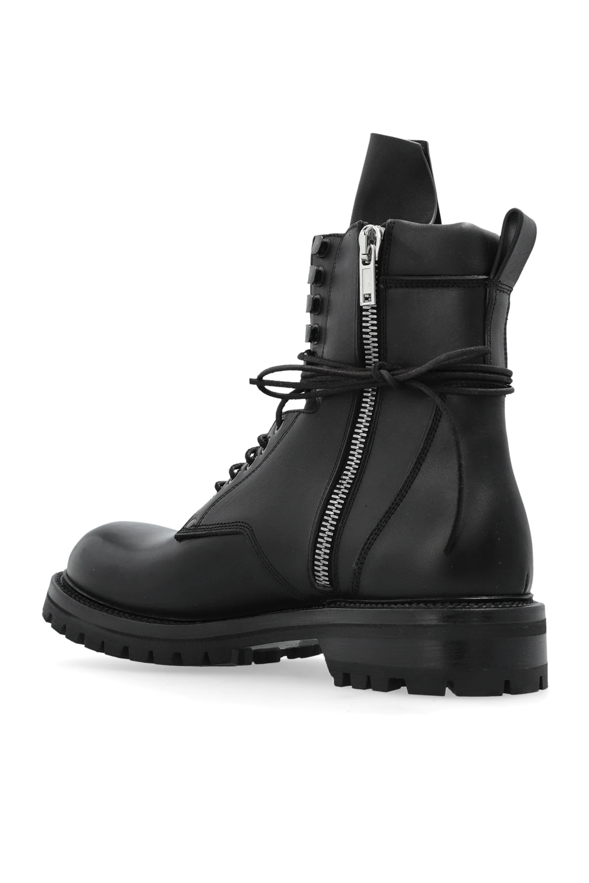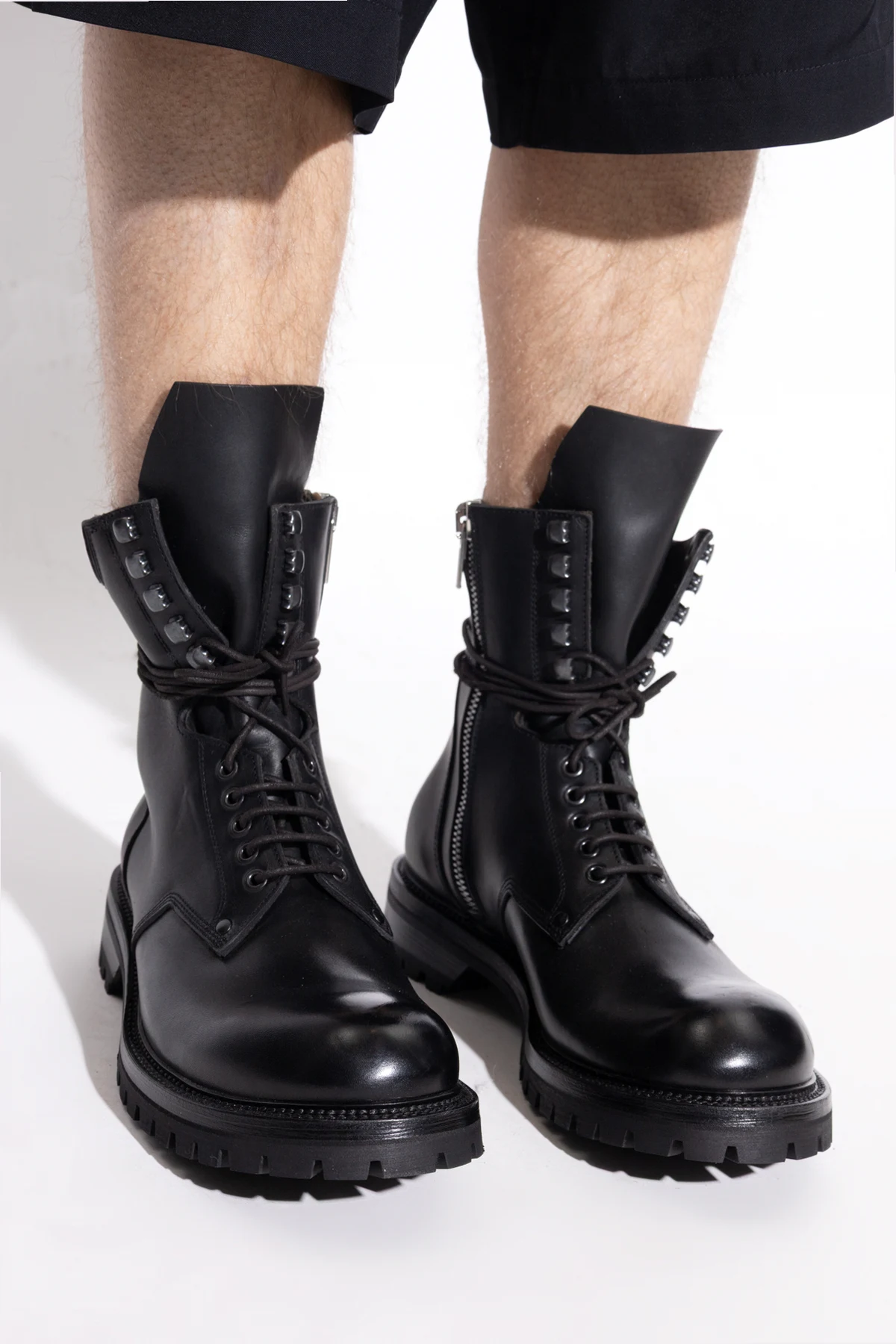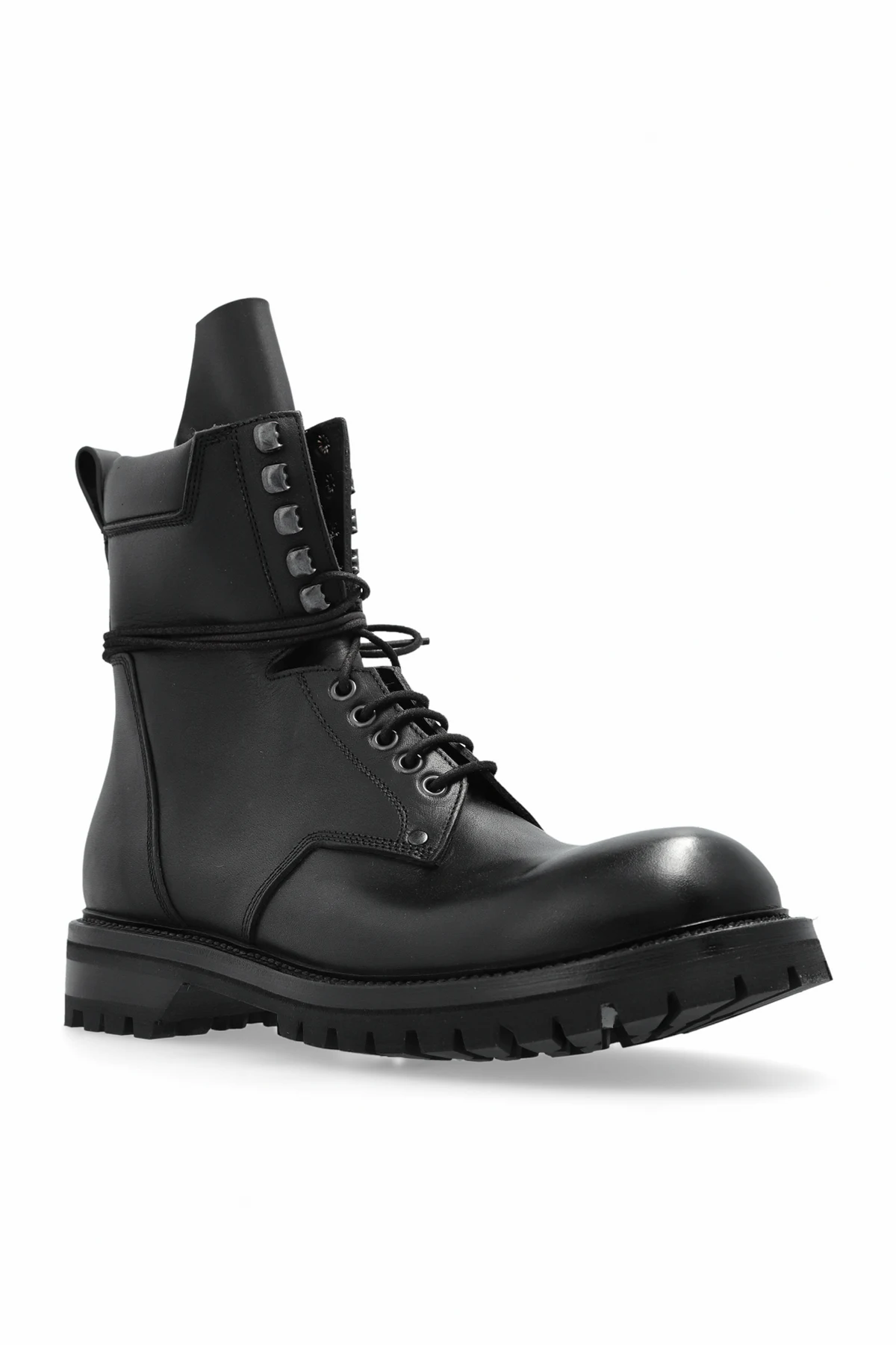 Odkryj wyjątkowe Skórzane buty "Army Low" od niezrównanego projektanta Ricka Owensa, które stanowią esencję luksusu i awangardy. Te czarne, skórzane buty zachwycają klasycznym, wysokim krojem, który sięga powyżej kostki, zapewniając jednocześnie elegancję i trwałość.