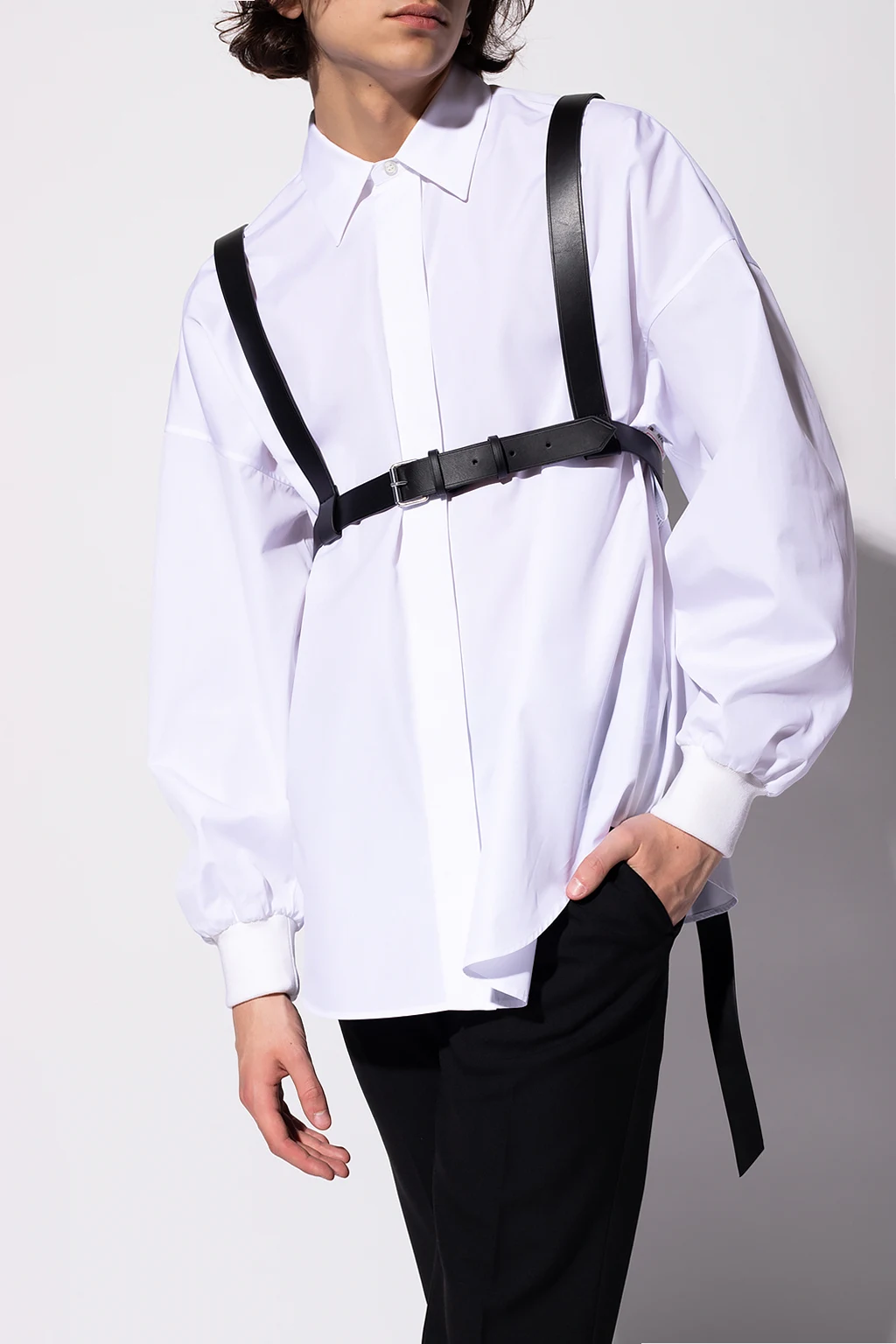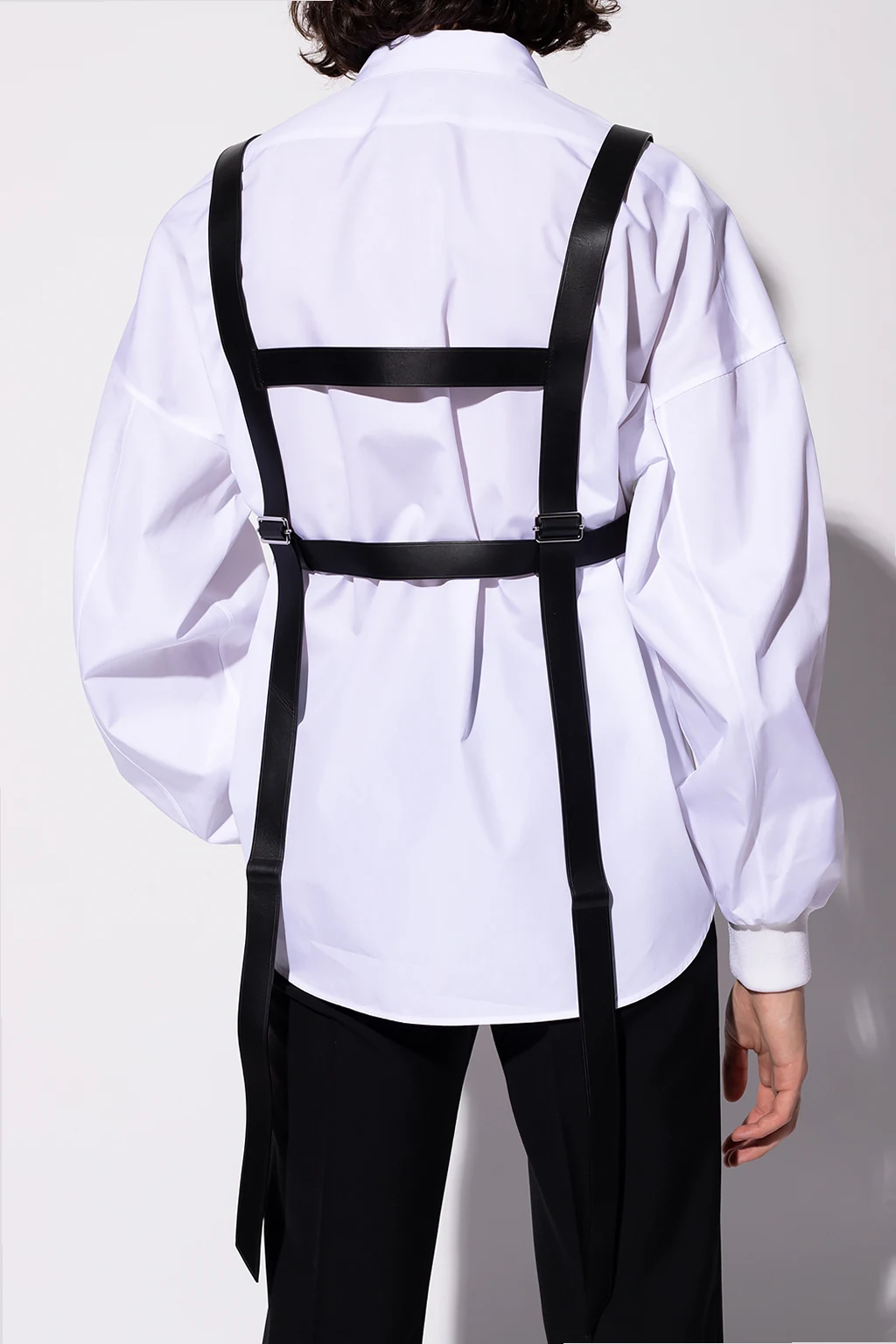 Czarne szelki z paskiem Alexander McQueen. Wykonane z cielęcej skóry. Metalowe elementy w kolorze srebrnym.