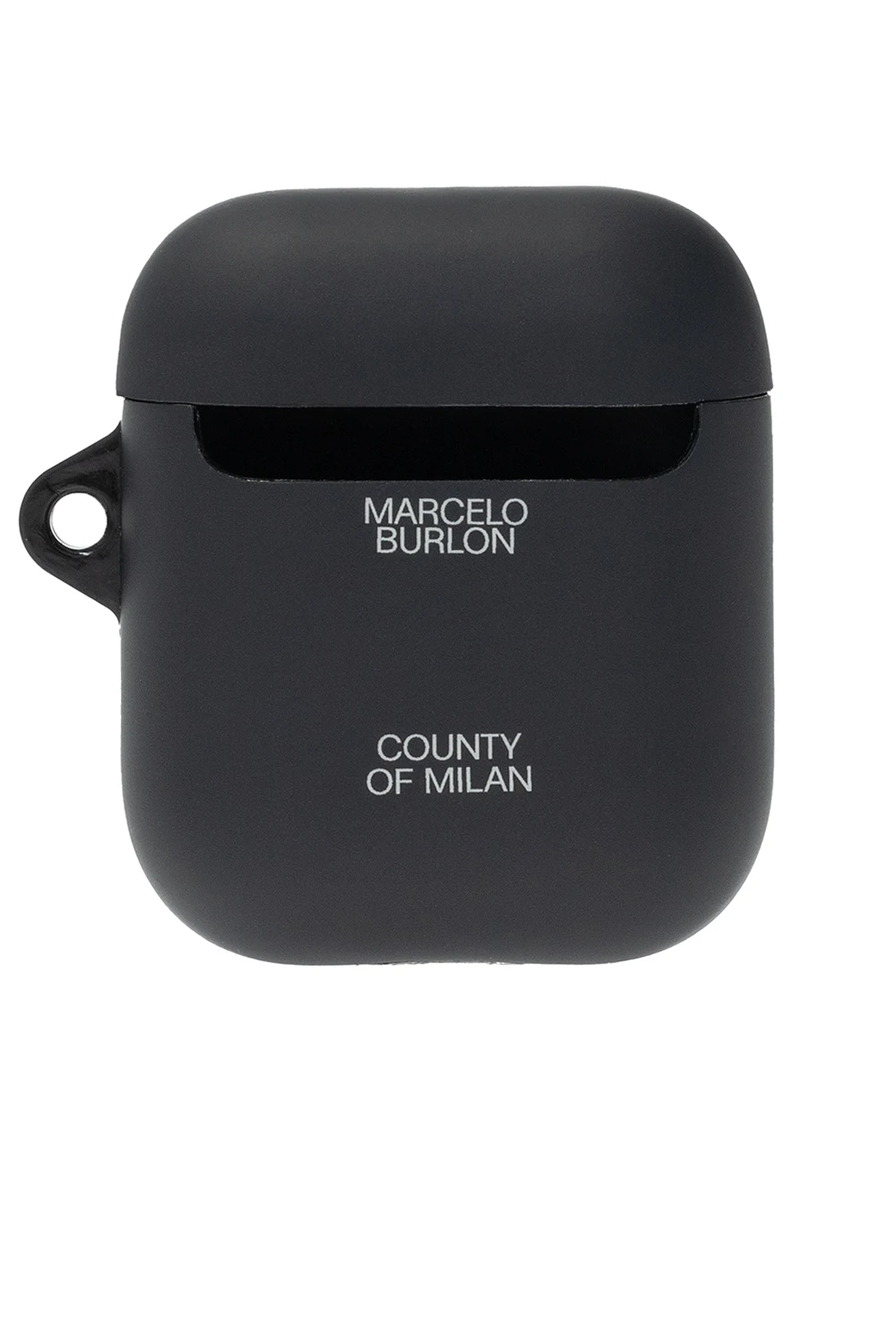 Czarne etui na AirPods Marcelo Burlon. Ozdobione nadrukiem z logo w kolorze białym.