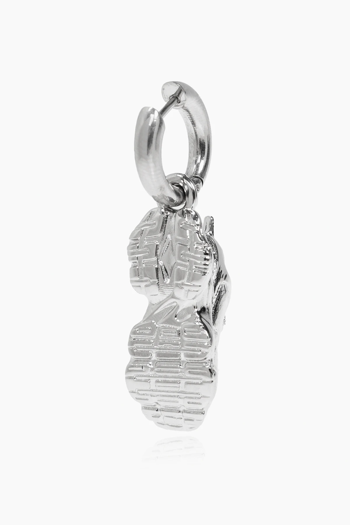 Prezentujemy Państwu ekskluzywny mosiężny kolczyk od Balenciaga , który jest kwintesencją nowoczesnej elegancji i niebanalnego designu. Wykonany w całości z mosiądzu, charakteryzuje się wyjątkowym połyskiem, który przyciąga spojrzenia i dodaje blasku każdej stylizacji. Dominujący srebrny kolor nadaje mu uniwersalność, pozwalając na dopasowanie do wielu zestawów, od casualowych po wieczorowe kreacje.