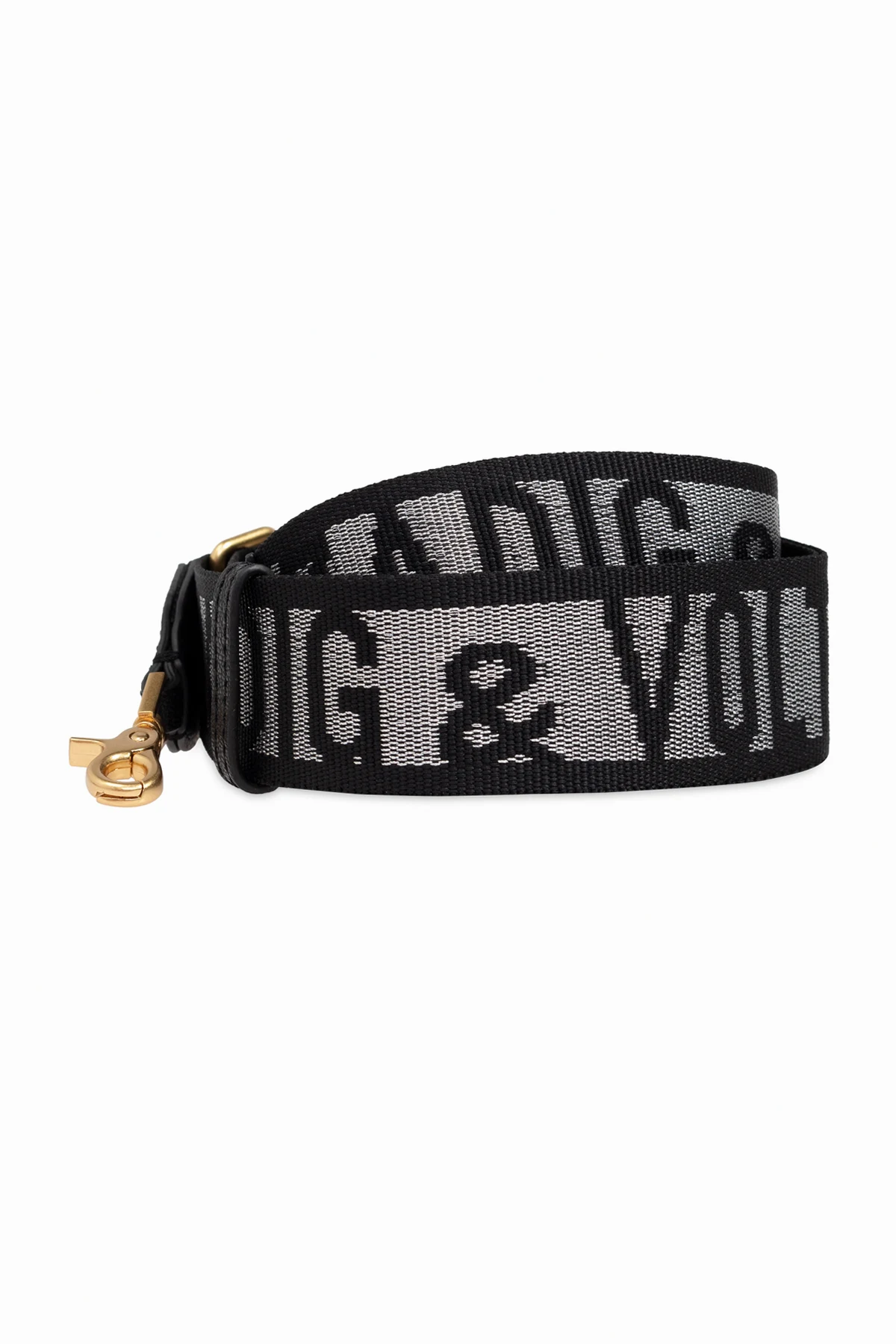 Stylowe i funkcjonalne złote klamry mocujące umożliwiają łatwe przymocowanie paska do torby, a ich obrotowa konstrukcja zapewnia swobodne poruszanie się paska, zwiększając komfort noszenia. Dominującym kolorem produktu jest czarny, z dodatkami w kolorze złotym i jasnymi elementami napisu, co sprawia, że pasek jest nie tylko praktycznym, ale i eleganckim dodatkiem.