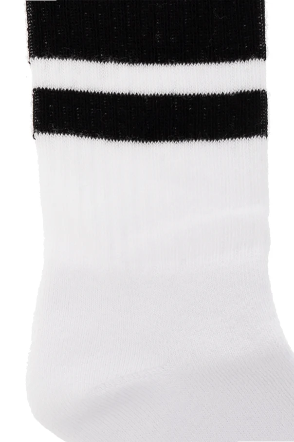 Biało-czarne skarpety Dolce & Gabbana Kids. Wykonane z bawełny. Ozdobione logo. Wykończone ściągaczem.