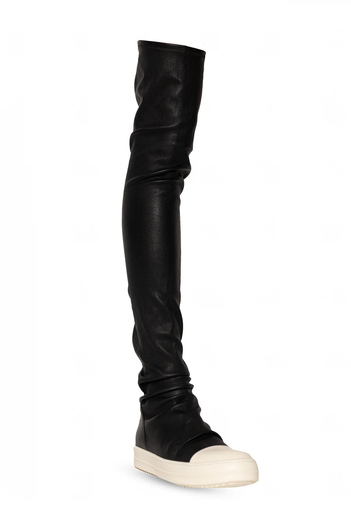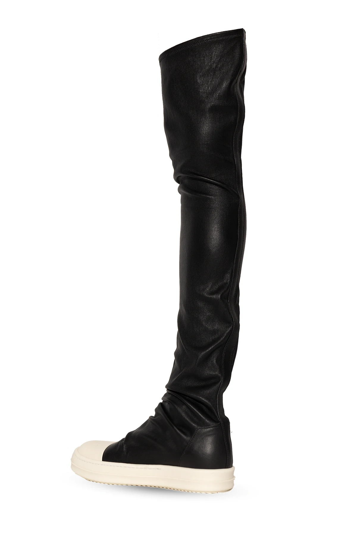 Czarno-kremowe kozaki za kolano Rick Owens. Wykonane ze skóry. Kremowa, gumowa podeszwa.