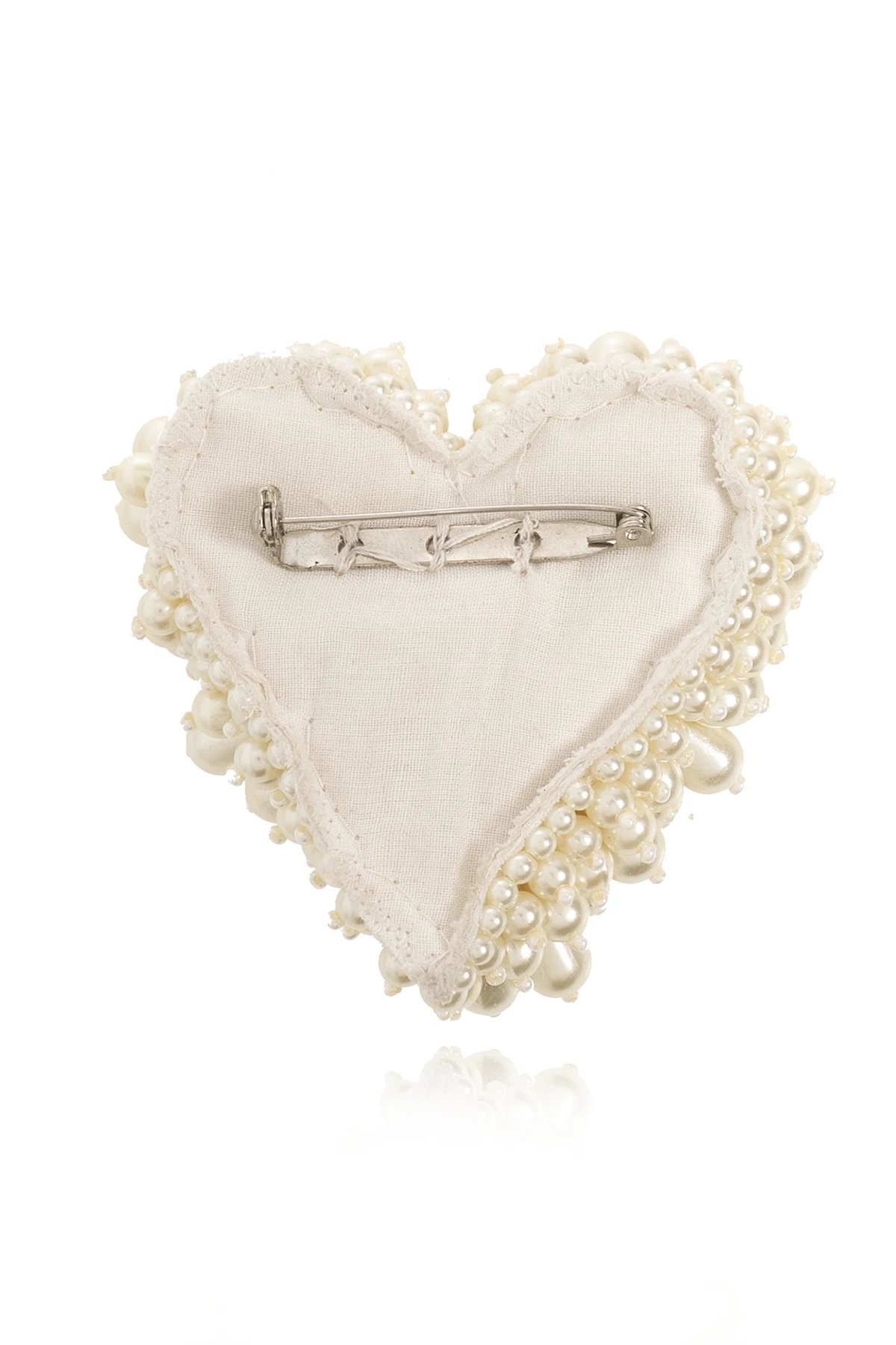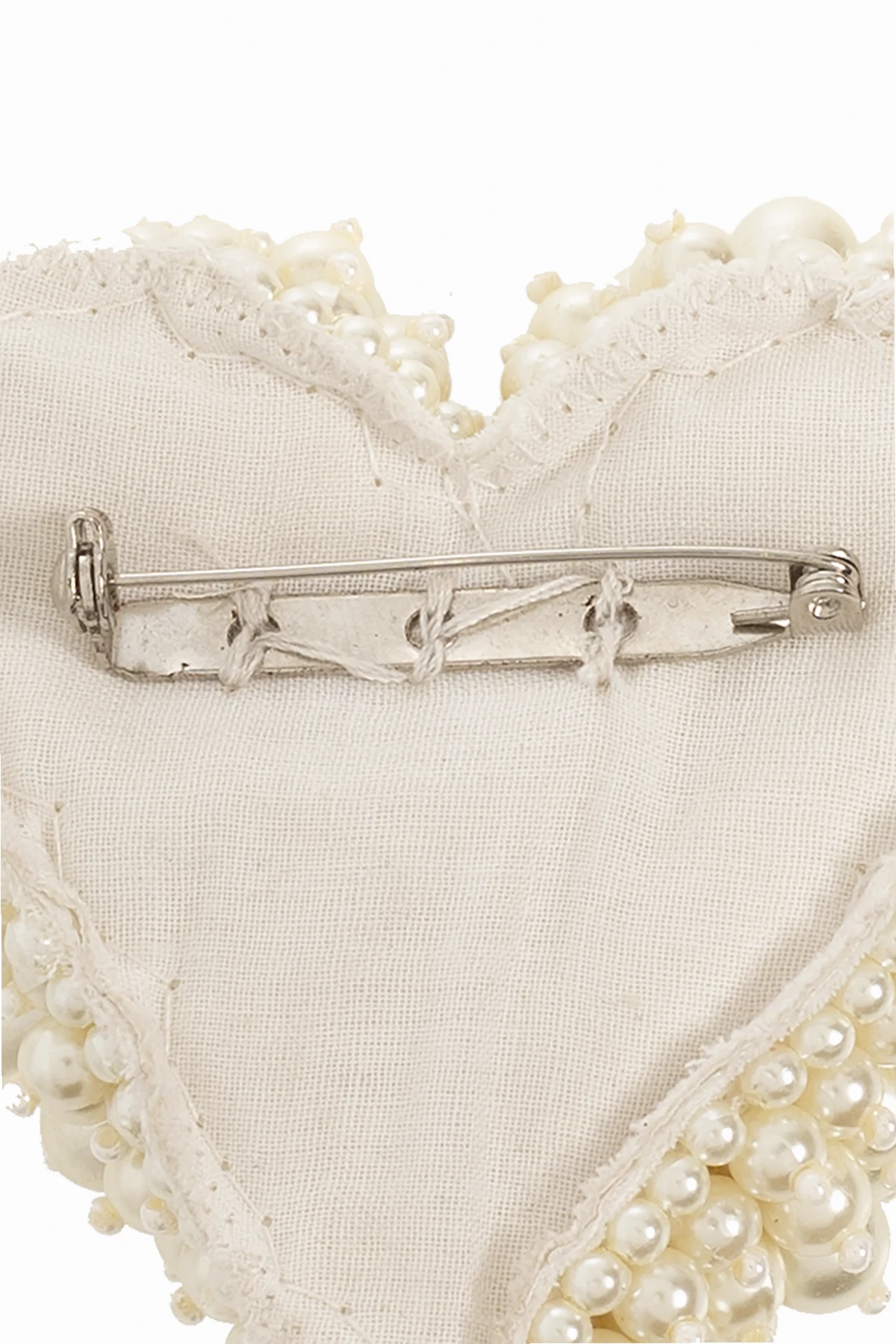 Biała broszka w kształcie serca Custommade. Wykonana z korali o perłowym wykończeniu. Zapinana na szpilkę w kolorze srebrnym.