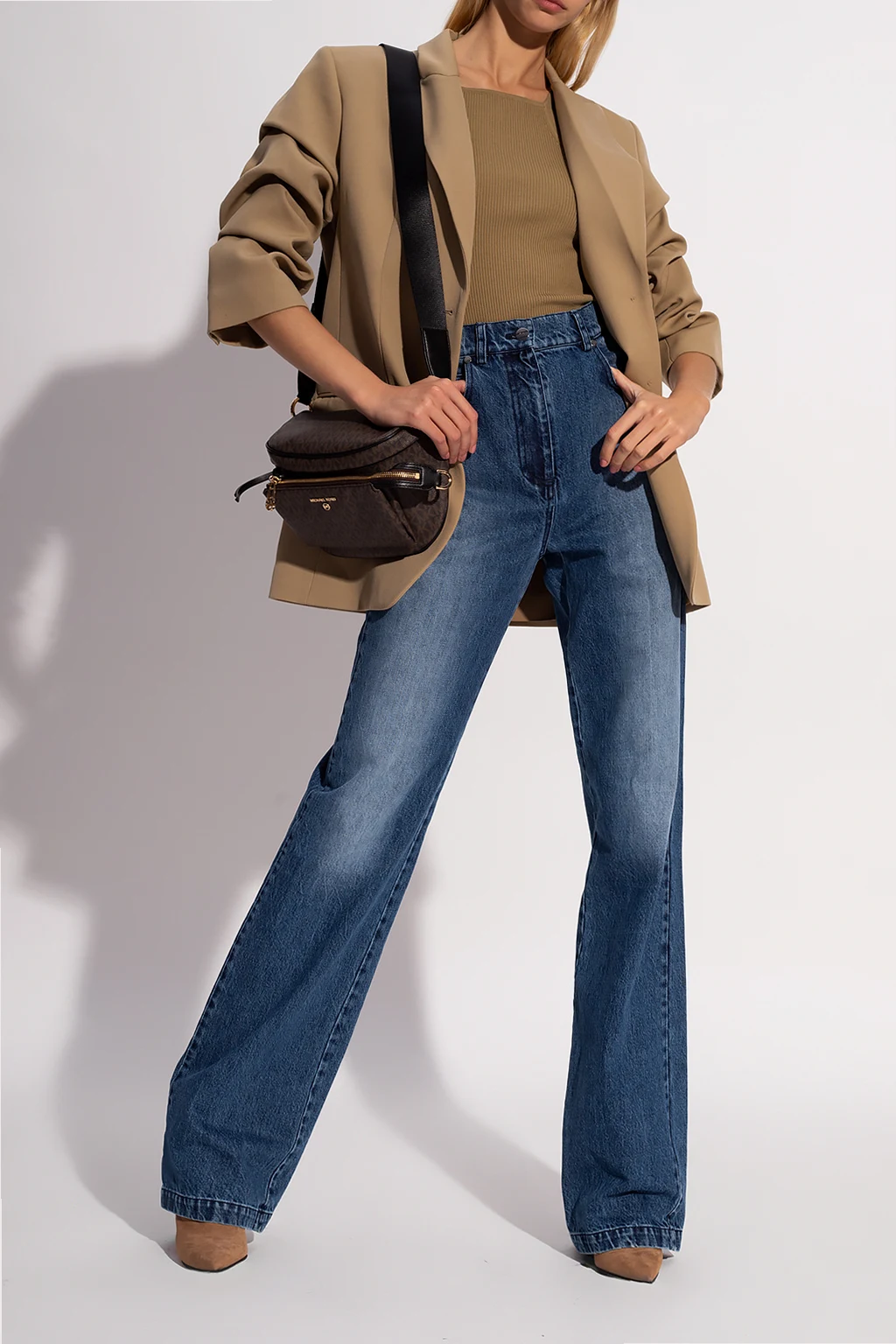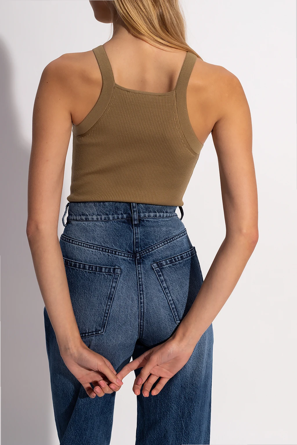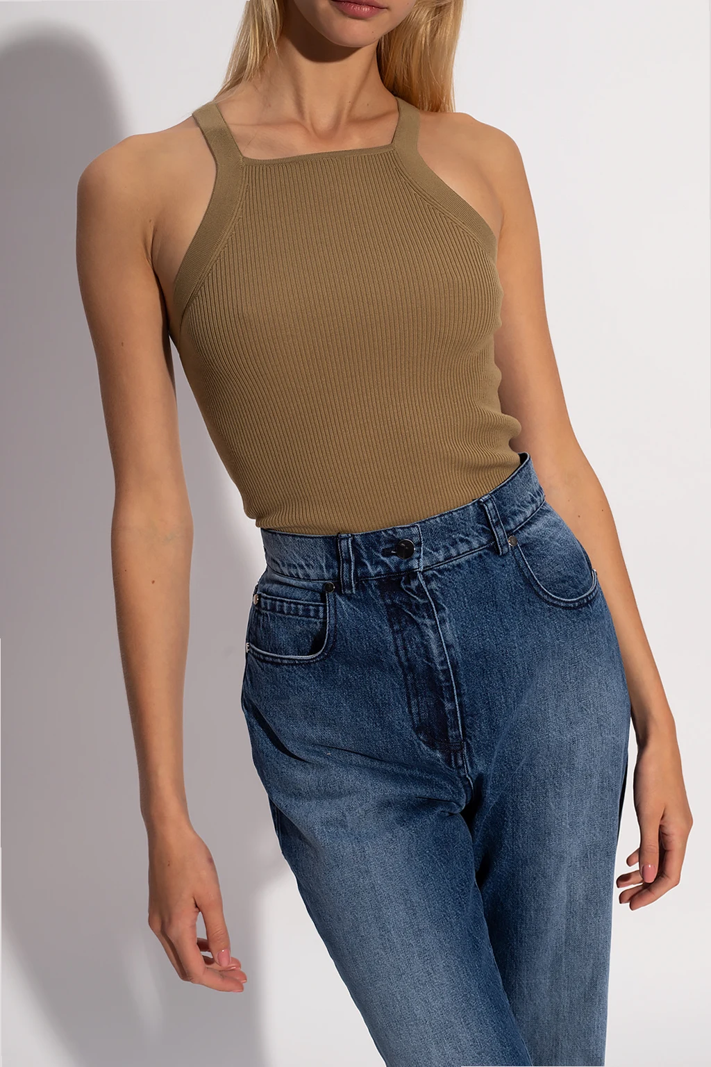 Beżowy, prążkowany top na ramiączka Michael Kors. Wykonany z wełny.