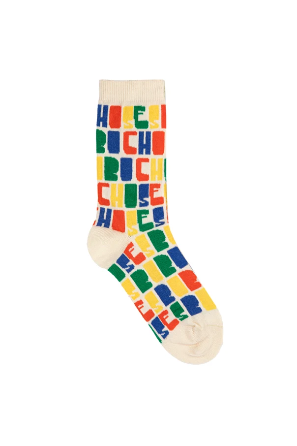Odkryj wyjątkowe skarpety z logo marki Bobo Choses, stworzone z myślą o młodych entuzjastach barwnego świata. Klasyczny, długi fason wyróżnia prosty krój oraz starannie wykonany, elastyczny ściągacz, zapewniający doskonałe dopasowanie.