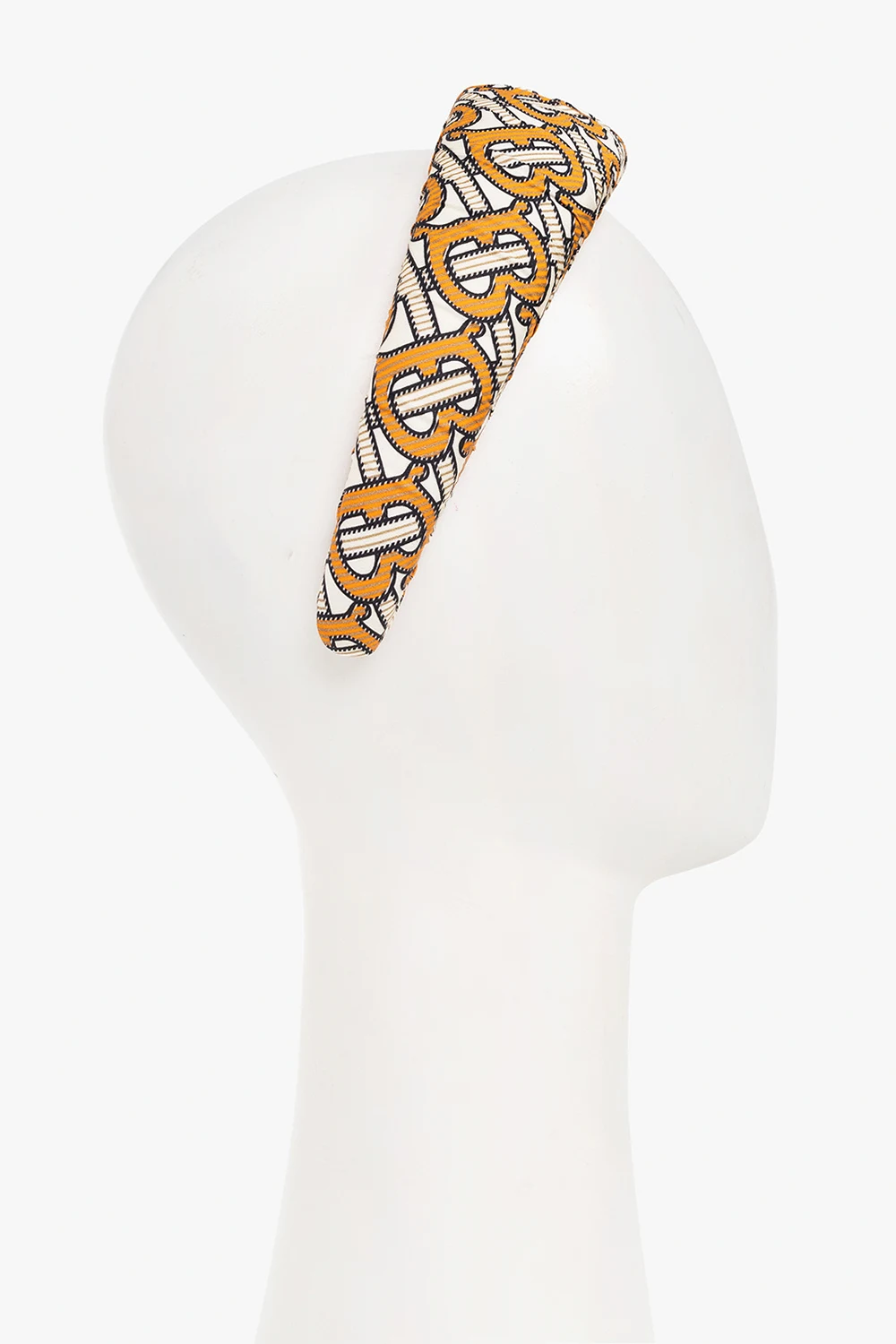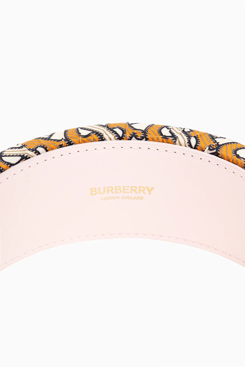 Kolorowa opaska do włosów Burberry Kids. Ozdobiona monogramem. Warstwa wewnętrzna wykończona jasnoróżową skórą.