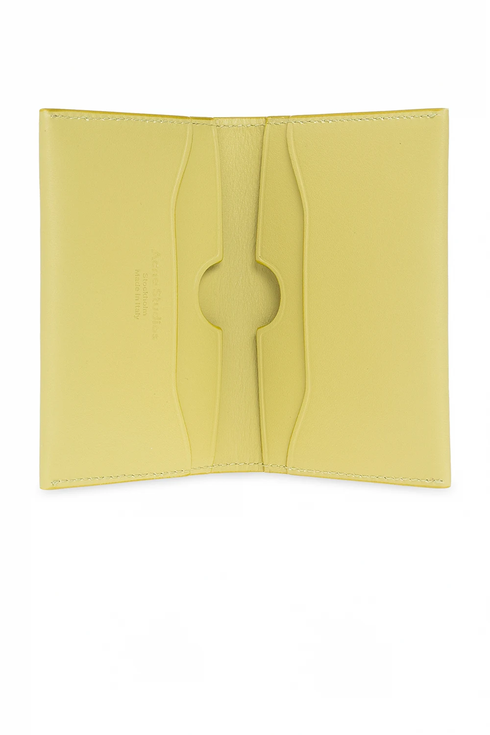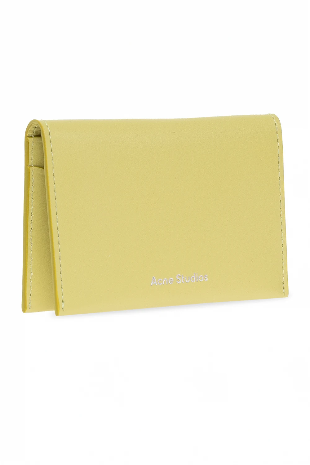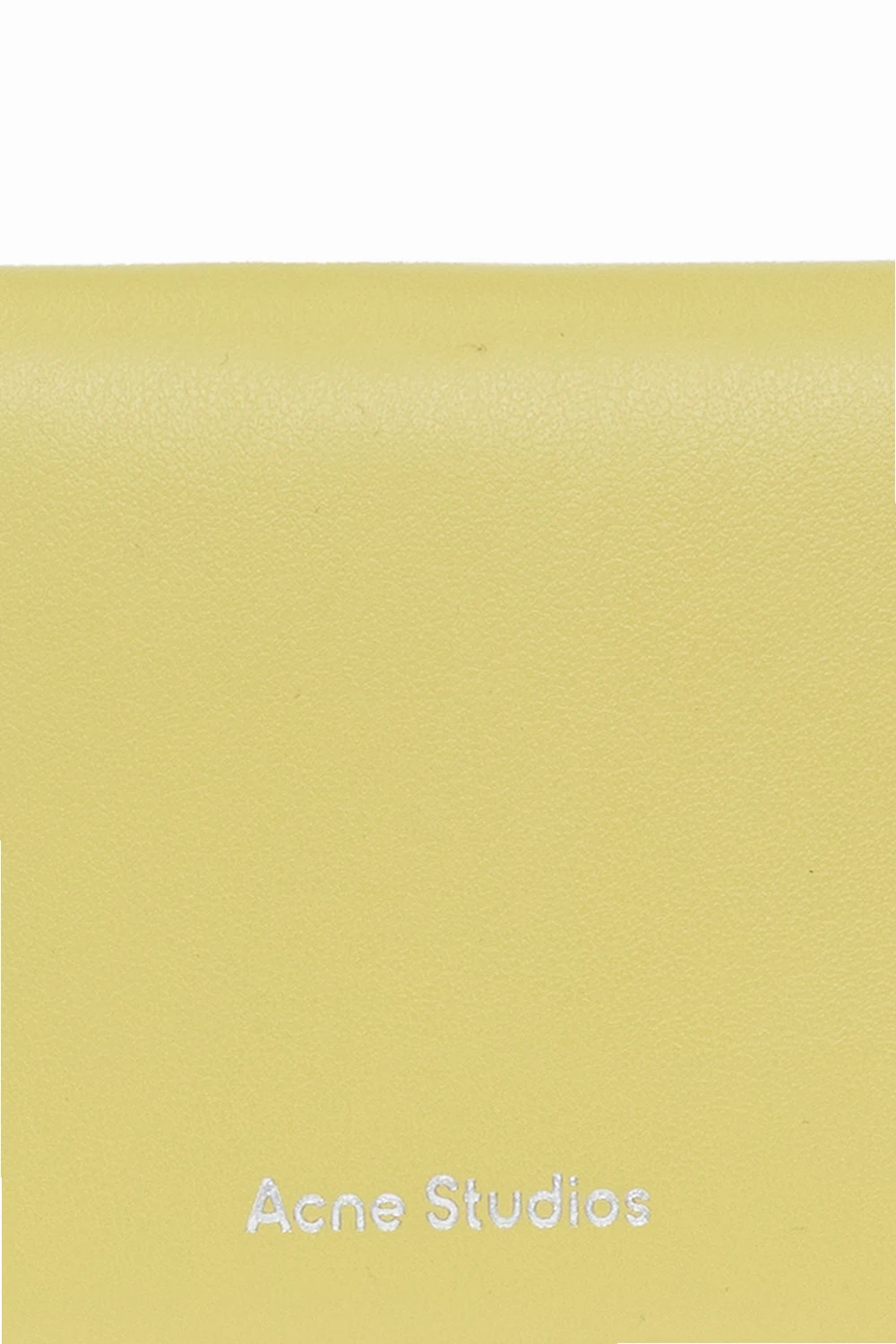 Zielone etui na karty Acne Studios. Wykonane ze skóry. Ozdobione wytłoczonym logo. Wewnątrz cztery miejsca na karty.