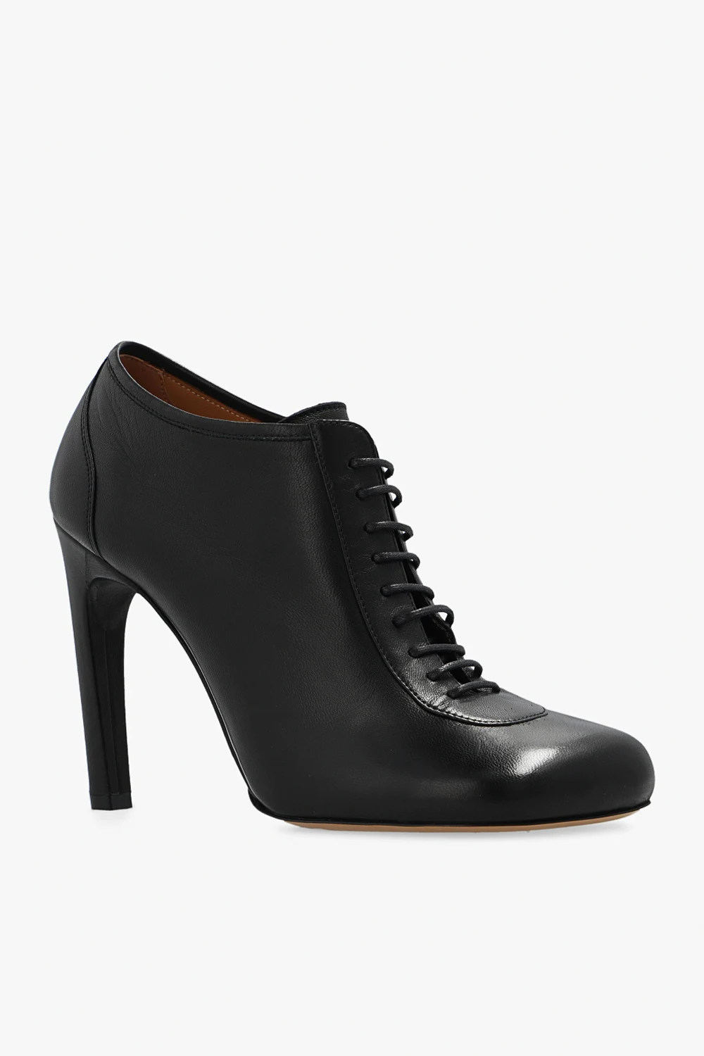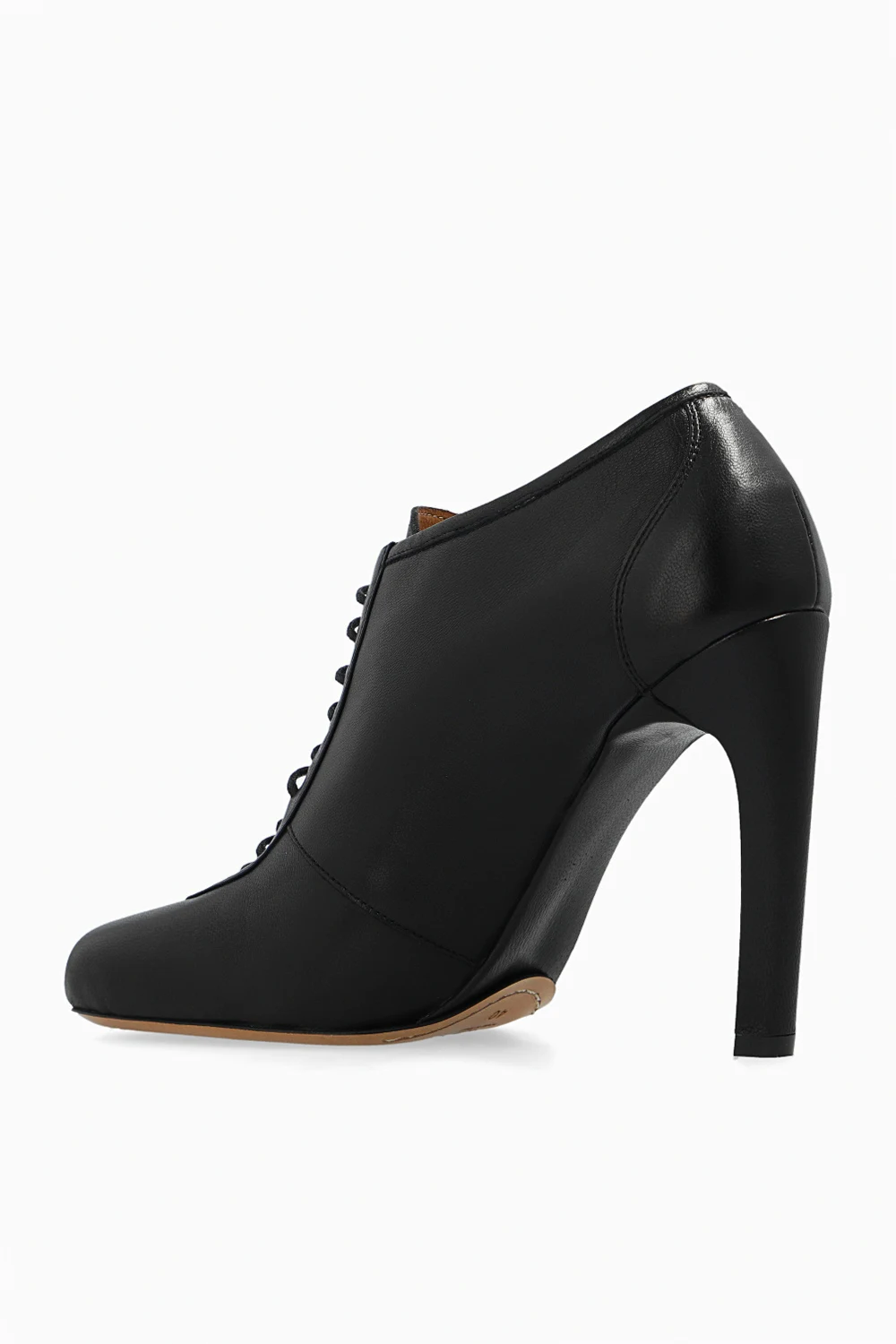 Czarne, sznurowane botki na obcasie Dries Van Noten. Wykonane ze skóry. Beżowa, skórzana podeszwa.