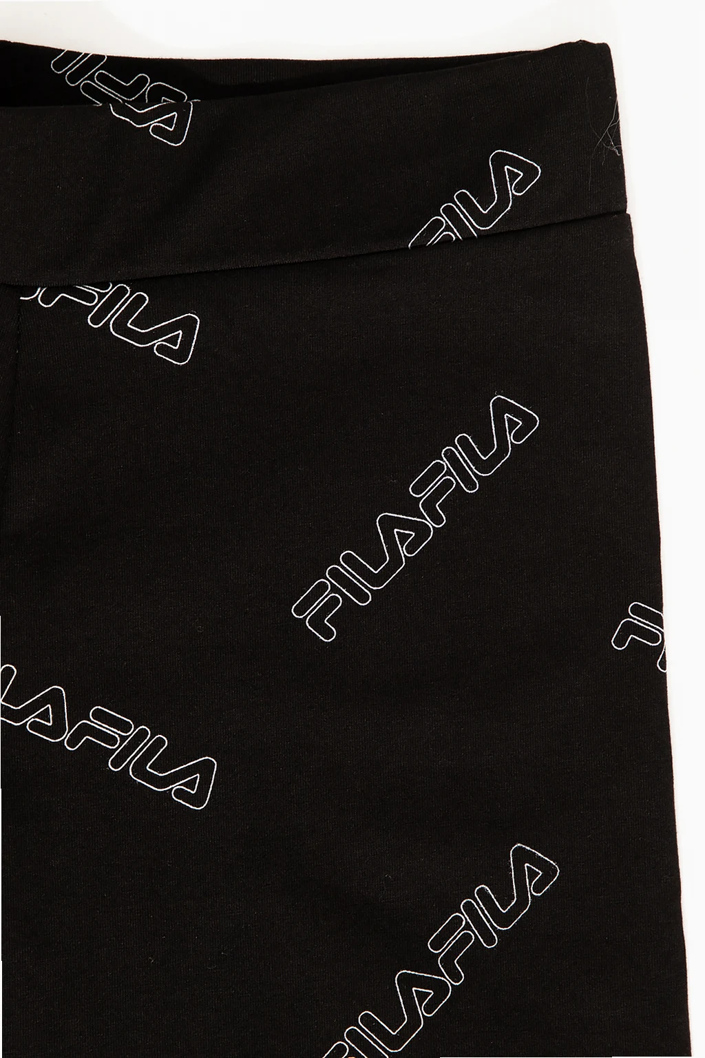 Czarne, krótkie legginsy Fila Kids. Wykonane z bawełny. W pasie wszyta guma. Nadrukowany wzór z logo w kolorze białym.