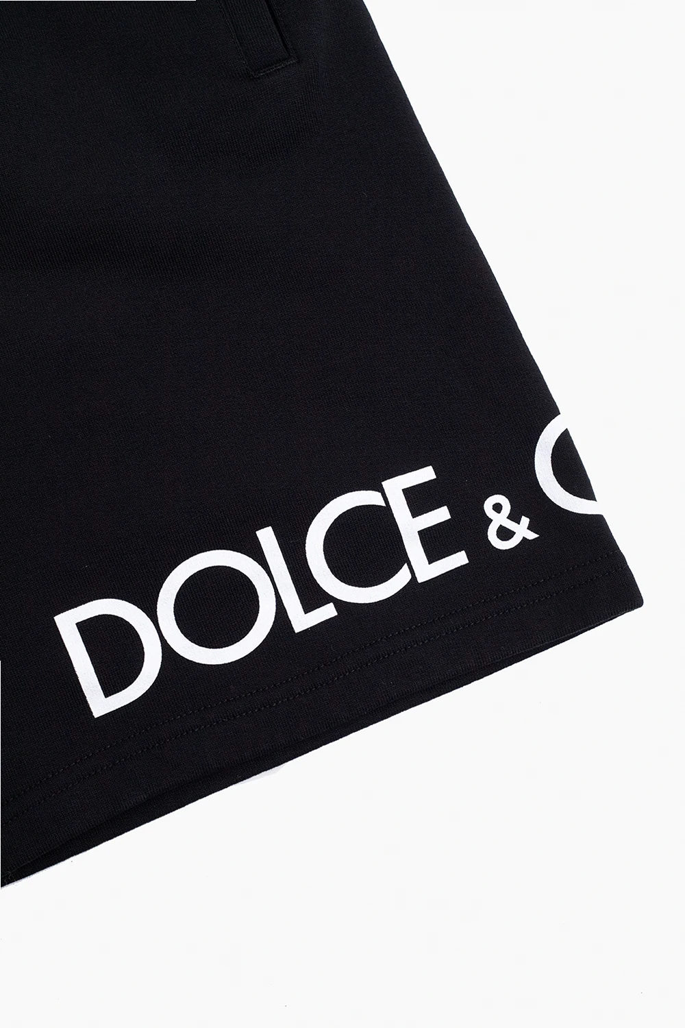 Czarne szorty Dolce & Gabbana Kids. Wykonane z bawełny. W pasie wszyta guma ściągana trokami. Ozdobione białym nadrukiem z logo. Trzy kieszenie wsuwane.