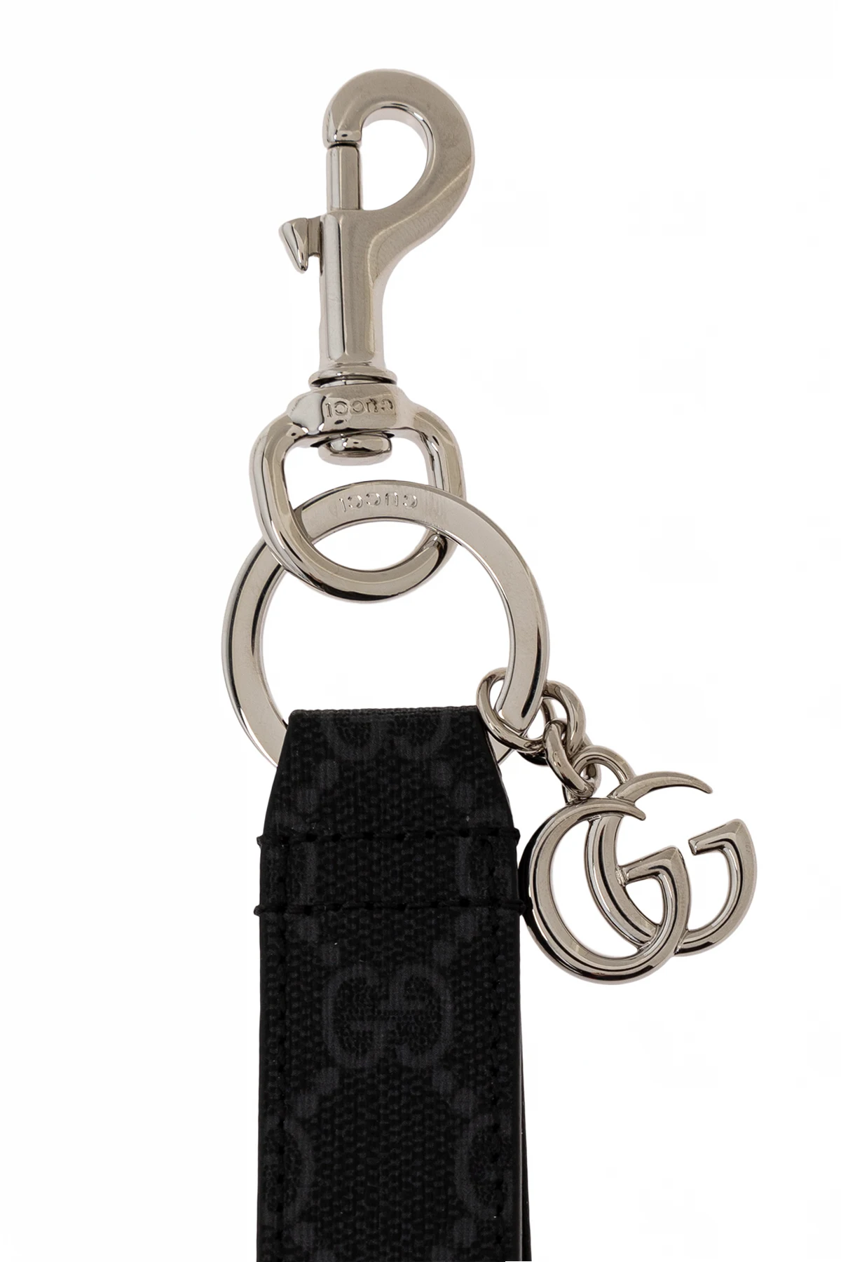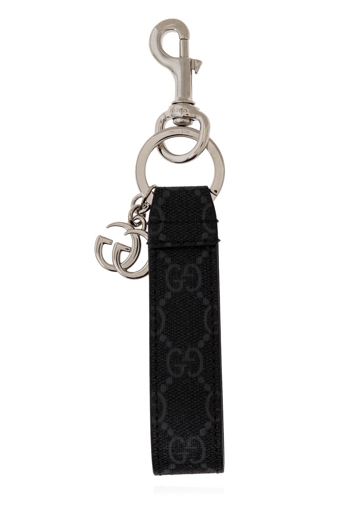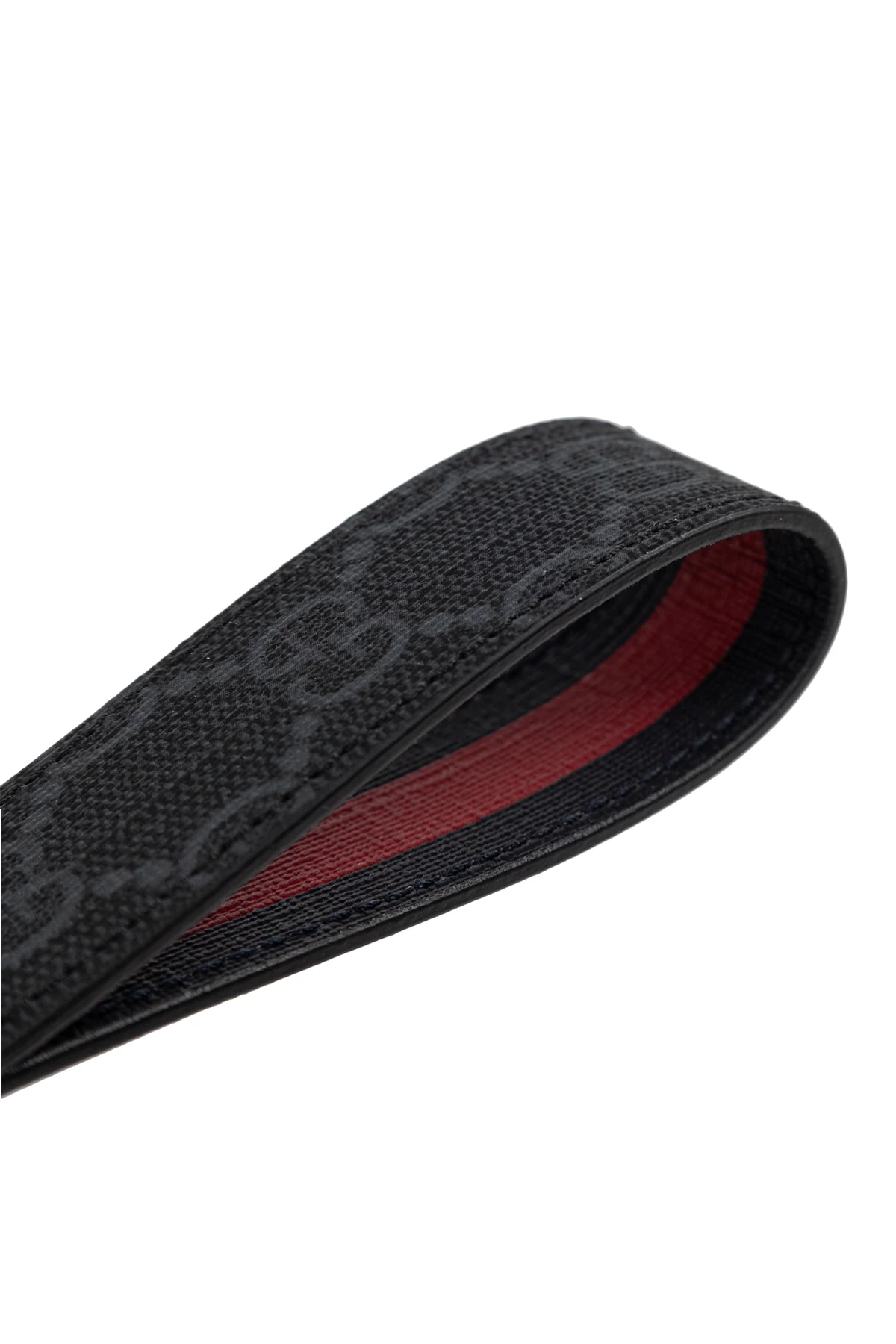 Dominujący ciemnoszary kolor z subtelnym wzorem splecionych liter "GG" jest kwintesencją elegancji, a czerwony akcent wewnątrz dodaje mu finezji. Metalowy karabińczyk oraz kółko do kluczy to praktyczne rozwiązania, które gwarantują wygodę użytkowania.