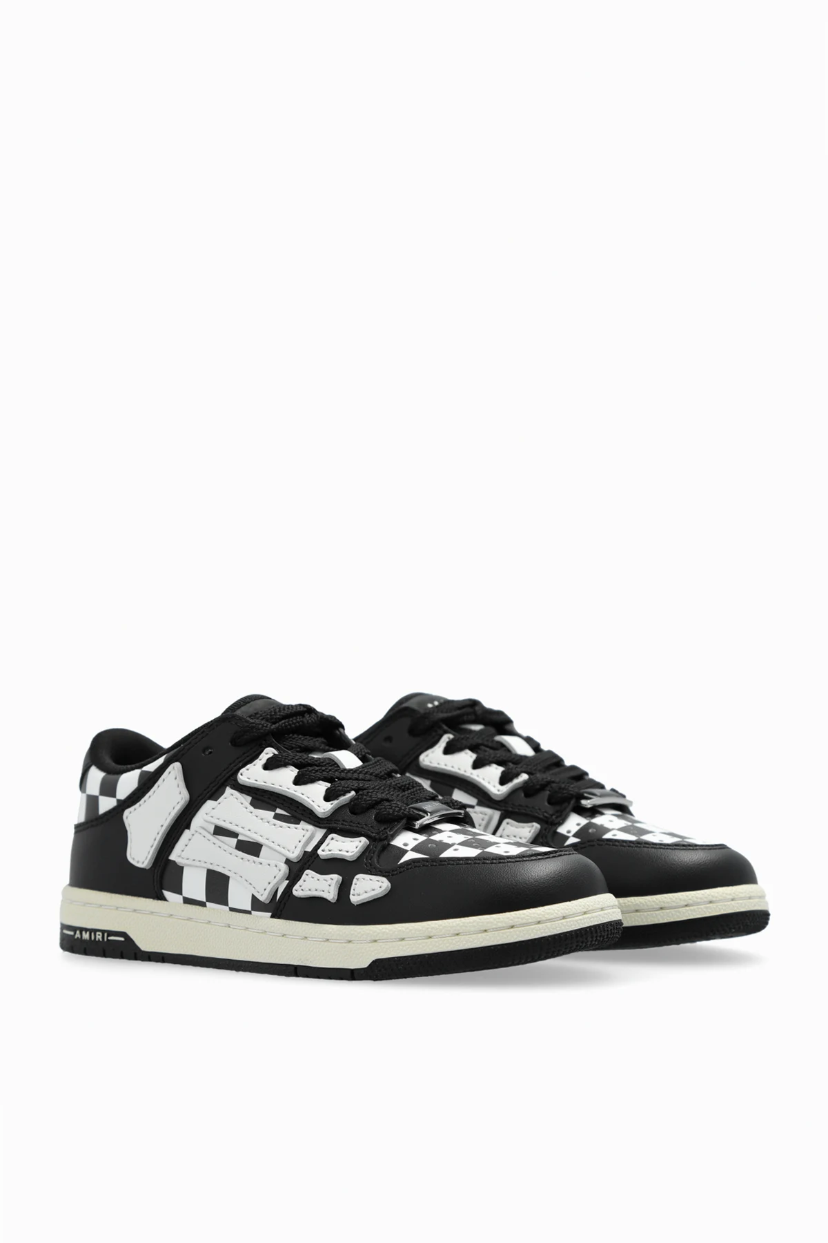 Przedstawiamy Państwu kwintesencję miejskiego szyku i wygody – buty sportowe 'Skel Top Low' od cenionego projektanta Amiri Kids . Dedykowane dla miłośników niebanalnego designu, łączą w sobie elegancką prostotę z dynamicznym akcentem, jakim jest charakterystyczny wzór szachownicy, nawiązujący do ekscytacji wyścigami motorowymi. Dominacja czerni, przełamana białymi detalami i szachownicą, tworzy kontrast, który przyciąga spojrzenia i podkreśla oryginalność kreacji.
