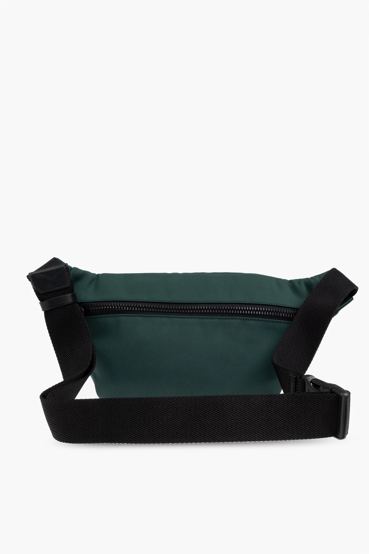 Detale, takie jak średniej wielkości kieszeń zamykana na suwak i okrągłe logo projektanta, nadają jej niepowtarzalnego charakteru. Regulowany, szeroki pasek zwiększa komfort noszenia, umożliwiając dopasowanie do indywidualnych potrzeb. Dominujący głęboki zielony kolor wzbogacony o czarne akcenty podkreśla elegancki i uniwersalny wygląd, który doskonale wpisuje się w aktualne trendy.